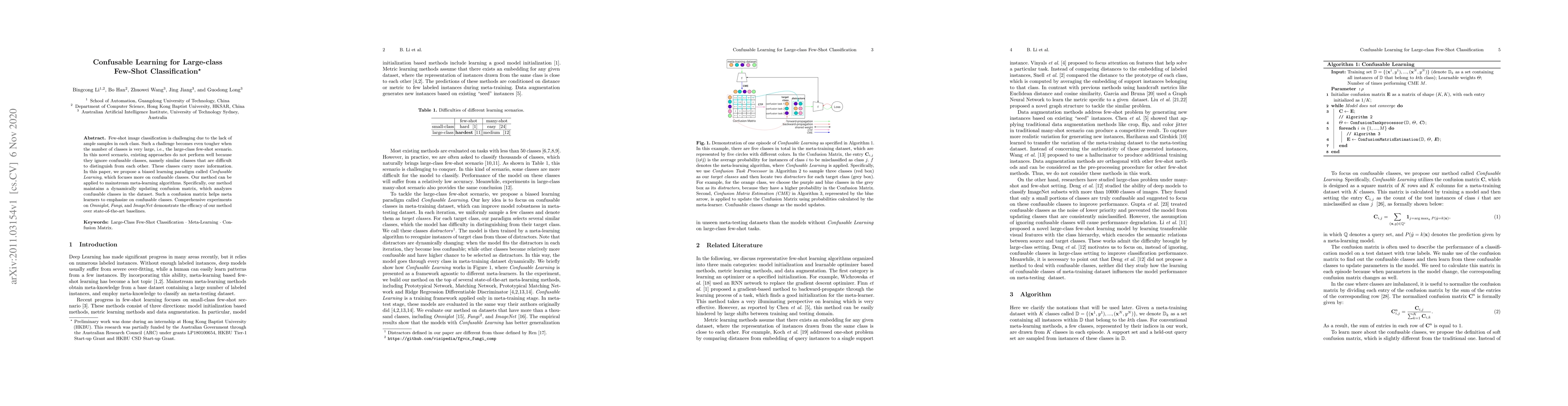 Few-shot image classification is challenging due to the lack of ample samples in each class. Such a challenge becomes even tougher when the number of classes is very large, i.e., the large-class few-shot scenario. In this novel scenario, existing approaches do not perform well because they ignore confusable classes, namely similar classes that are difficult to distinguish from each other. These classes carry more information. In this paper, we propose a biased learning paradigm called Confusable Learning, which focuses more on confusable classes. Our method can be applied to mainstream meta-learning algorithms. Specifically, our method maintains a dynamically updating confusion matrix, which analyzes confusable classes in the dataset. Such a confusion matrix helps meta learners to emphasize on confusable classes. Comprehensive experiments on Omniglot, Fungi, and ImageNet demonstrate the efficacy of our method over state-of-the-art baselines.