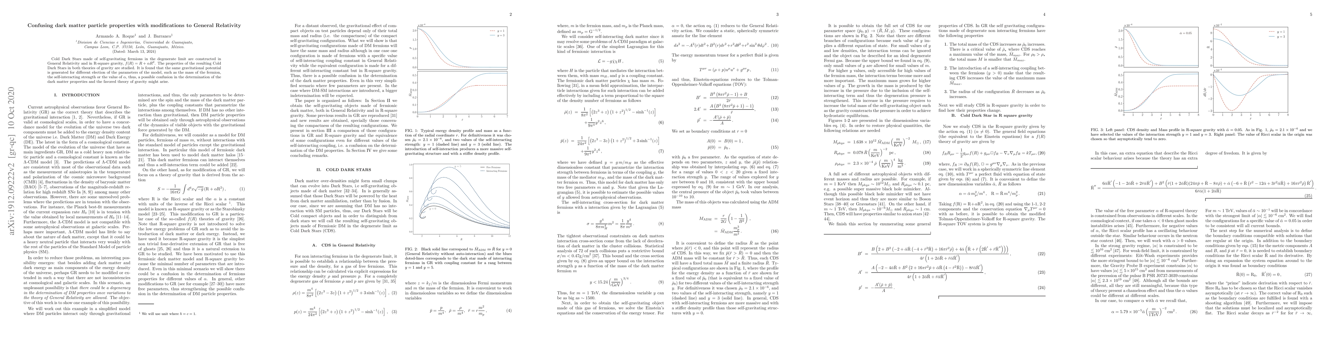 A study found that Cold Dark Stars in General Relativity and R-square gravity have similar gravitational potential properties when parameters like fermion mass or self-interaction strength are varied, potentially causing confusion about dark matter and favored theories of gravity.