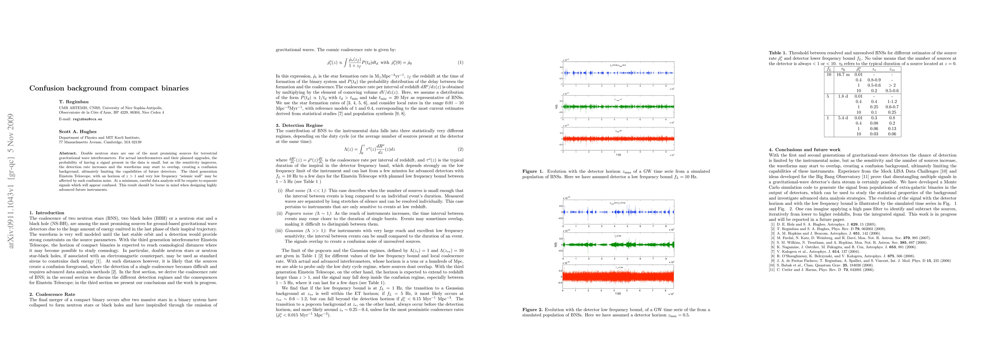 Double neutron stars are one of the most promizing sources for terrestrial gravitational wave interferometers. For actual interferometers and their planned upgrades, the probability of having a signal present in the data is small, but as the sensitivity improves, the detection rate increases and the waveforms may start to overlap, creating a confusion background, ultimately limiting the capabilities of future detectors. The third generation Einstein Telescope, with an horizon of $z > 1$ and very low frequency ``seismic wall'' may be affected by such confusion noise. At a minimum, careful data analysis will be require to separate signals which will appear confused. This result should be borne in mind when designing highly advanced future instruments.