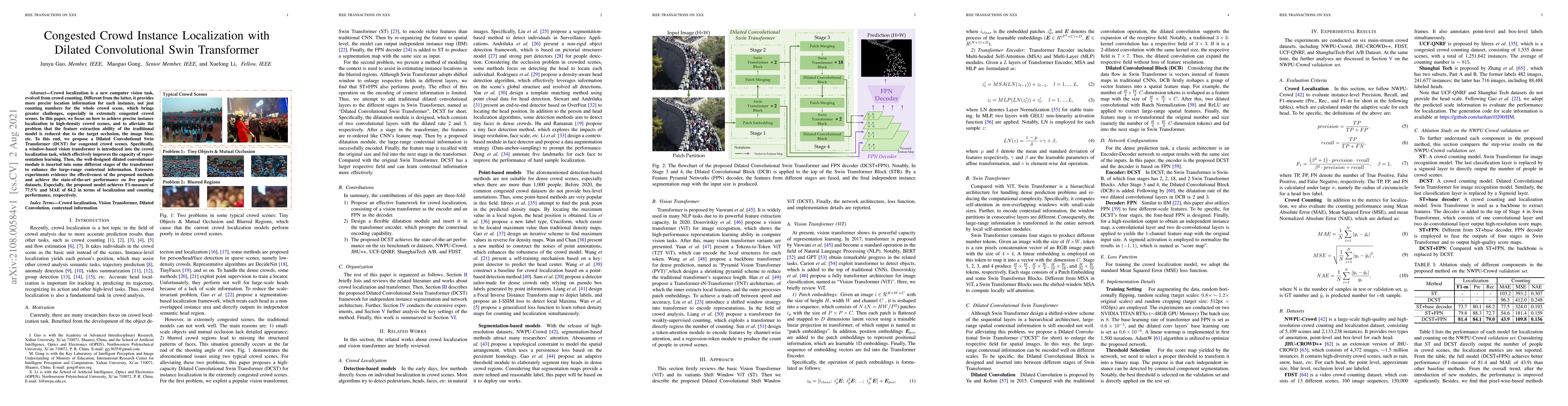 This paper presents a Dilated Convolutional Swin Transformer (DCST) for precise localization of individuals in congested crowd scenes, addressing challenges like target occlusion and image blur. The proposed model integrates a window-based vision transformer and dilated convolutional modules to enhance feature extraction and contextual information, achieving state-of-the-art results with a 77.5% F1-measure and 84.2 MAE on five datasets.