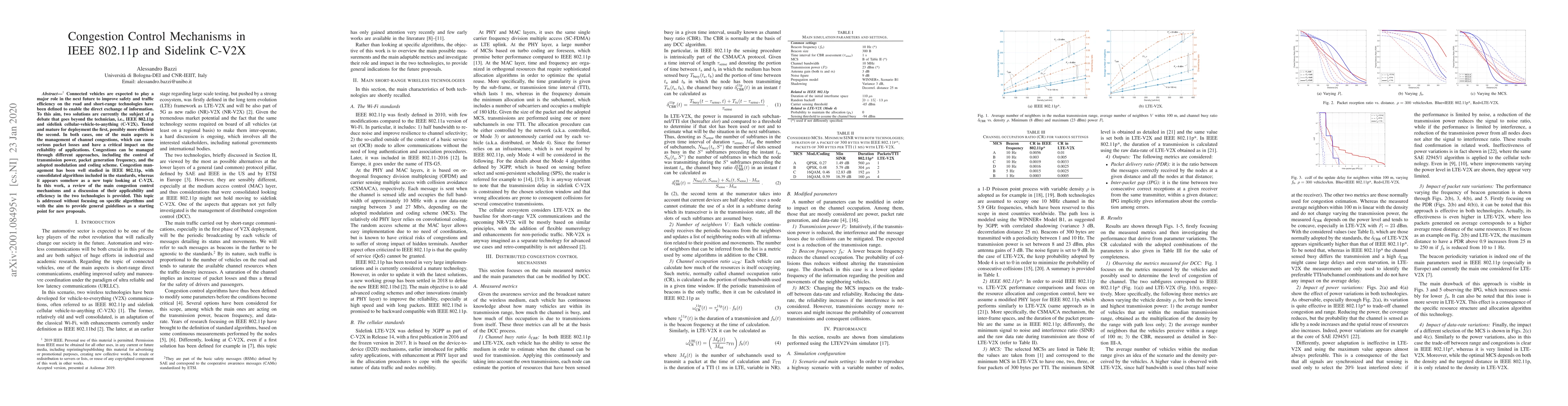 This paper reviews congestion control mechanisms in IEEE 802.11p and sidelink C-V2X technologies, comparing their approaches to managing channel congestions to ensure reliable communication for connected vehicles. It aims to provide general guidelines for future research rather than focusing on specific algorithms.