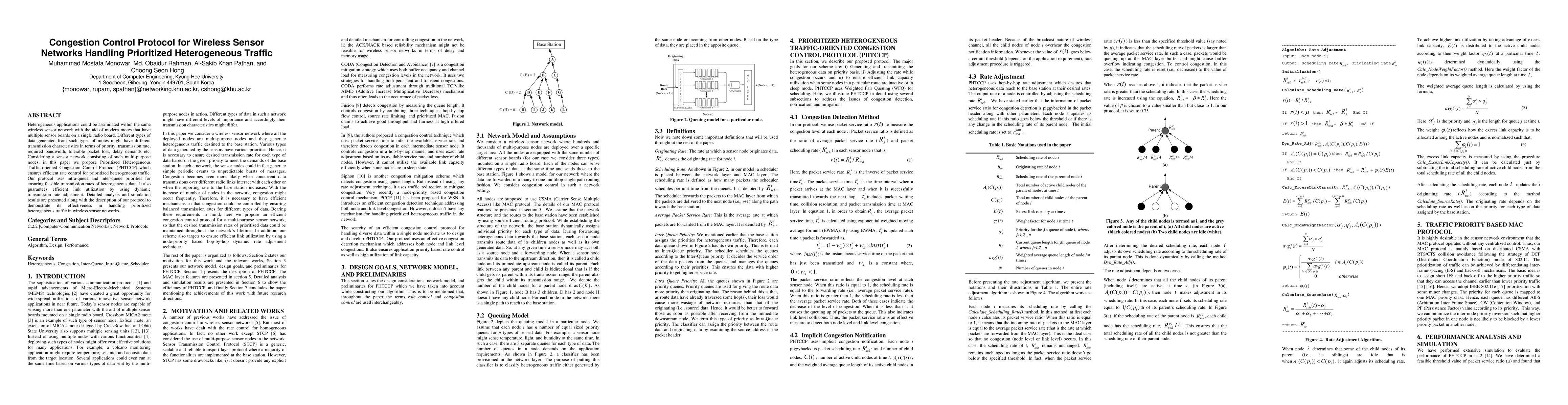 This paper proposes the Prioritized Heterogeneous Traffic-oriented Congestion Control Protocol (PHTCCP) to manage diverse data types in wireless sensor networks. PHTCCP employs intra-queue and inter-queue priorities, along with dynamic transmission rate adjustments, to ensure efficient data transmission and link utilization.