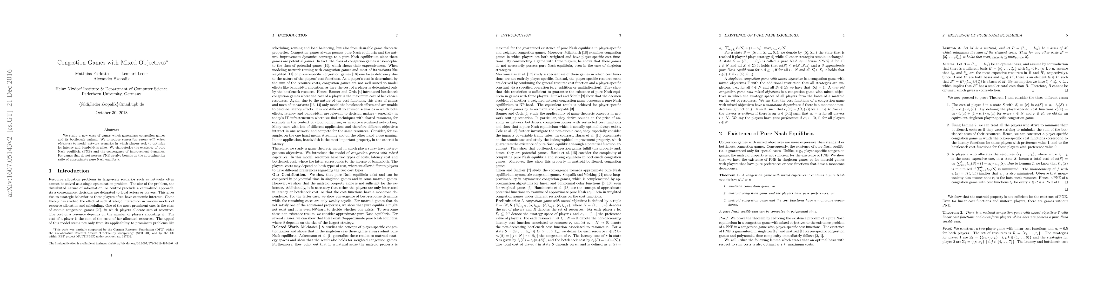 We study a new class of games which generalizes congestion games and its bottleneck variant. We introduce congestion games with mixed objectives to model network scenarios in which players seek to optimize for latency and bandwidths alike. We characterize the existence of pure Nash equilibria (PNE) and the convergence of improvement dynamics. For games that do not possess PNE we give bounds on the approximation ratio of approximate pure Nash equilibria.
