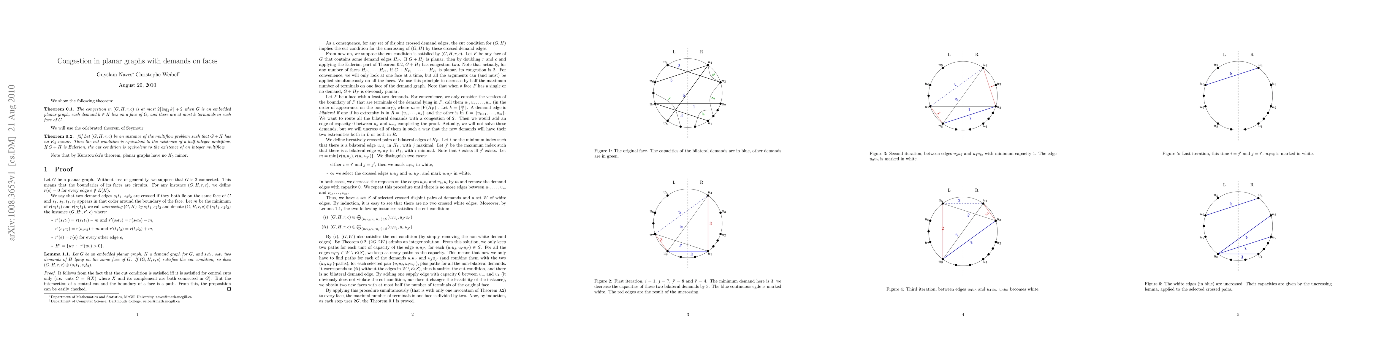 We give an algorithm to route a multicommodity flow in a planar graph $G$ with congestion $O(\log k)$, where $k$ is the maximum number of terminals on the boundary of a face, when each demand edge lie on a face of $G$. We also show that our specific method cannot achieve a substantially better congestion.