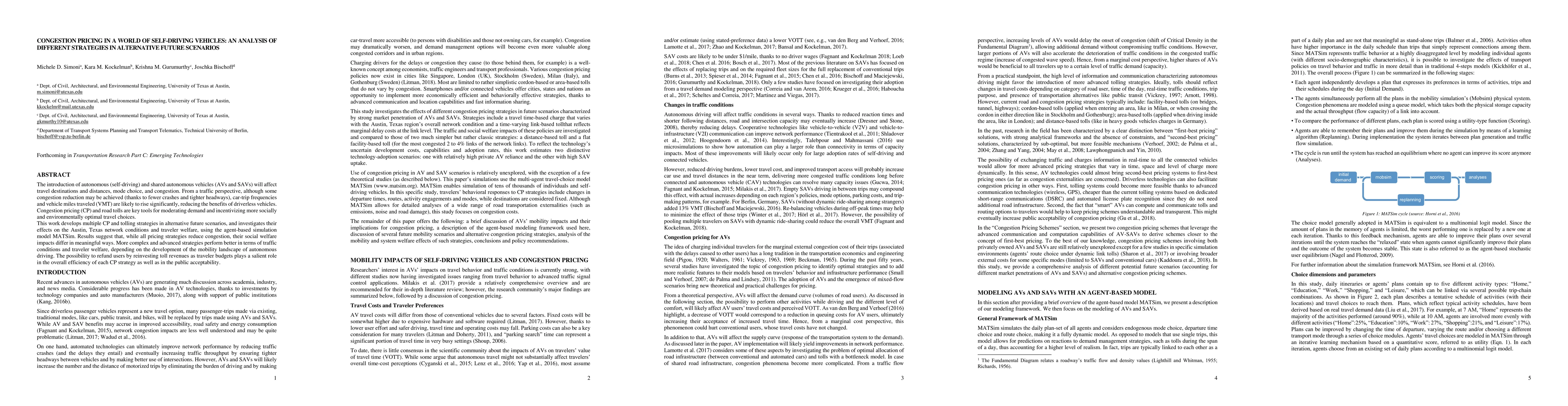 The introduction of autonomous (self-driving) and shared autonomous vehicles (AVs and SAVs) will affect travel destinations and distances, mode choice, and congestion. From a traffic perspective, although some congestion reduction may be achieved (thanks to fewer crashes and tighter headways), car-trip frequencies and vehicle miles traveled (VMT) are likely to rise significantly, reducing the benefits of driverless vehicles. Congestion pricing (CP) and road tolls are key tools for moderating demand and incentivizing more socially and environmentally optimal travel choices. This work develops multiple CP and tolling strategies in alternative future scenarios, and investigates their effects on the Austin, Texas network conditions and traveler welfare, using the agent-based simulation model MATSim. Results suggest that, while all pricing strategies reduce congestion, their social welfare impacts differ in meaningful ways. More complex and advanced strategies perform better in terms of traffic conditions and traveler welfare, depending on the development of the mobility landscape of autonomous driving. The possibility to refund users by reinvesting toll revenues as traveler budgets plays a salient role in the overall efficiency of each CP strategy as well as in the public acceptability.