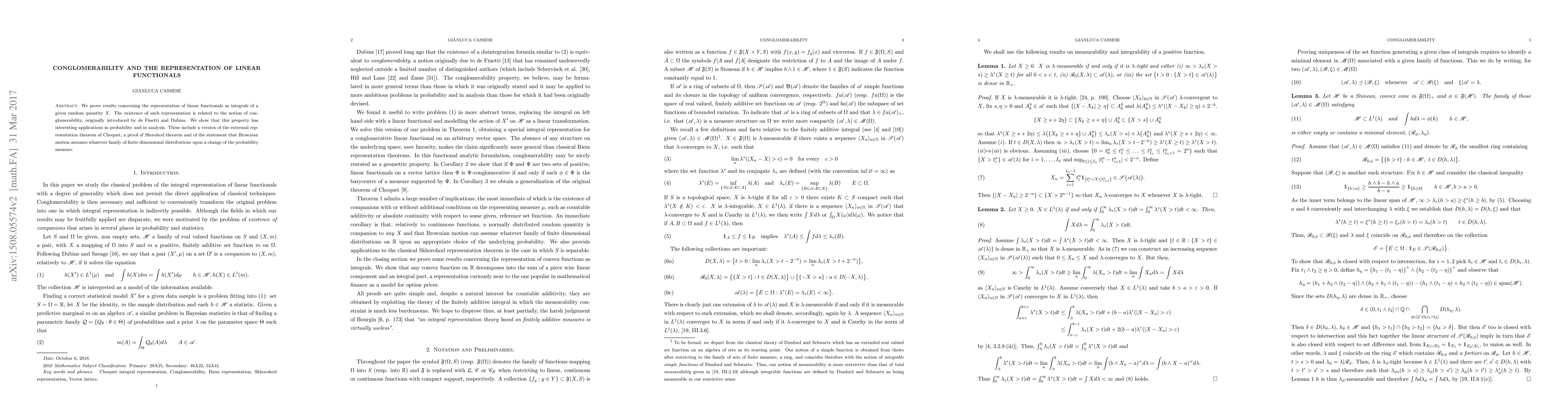 We prove results concerning the representation of a given distribution by means of a given random quantity. The existence of a solution to this problem is related to the notion of conglomerability, originally introduced by Dubins to study finitely additive conditional probability. We show that this property has many interesting applications in probability as well as in analysis.