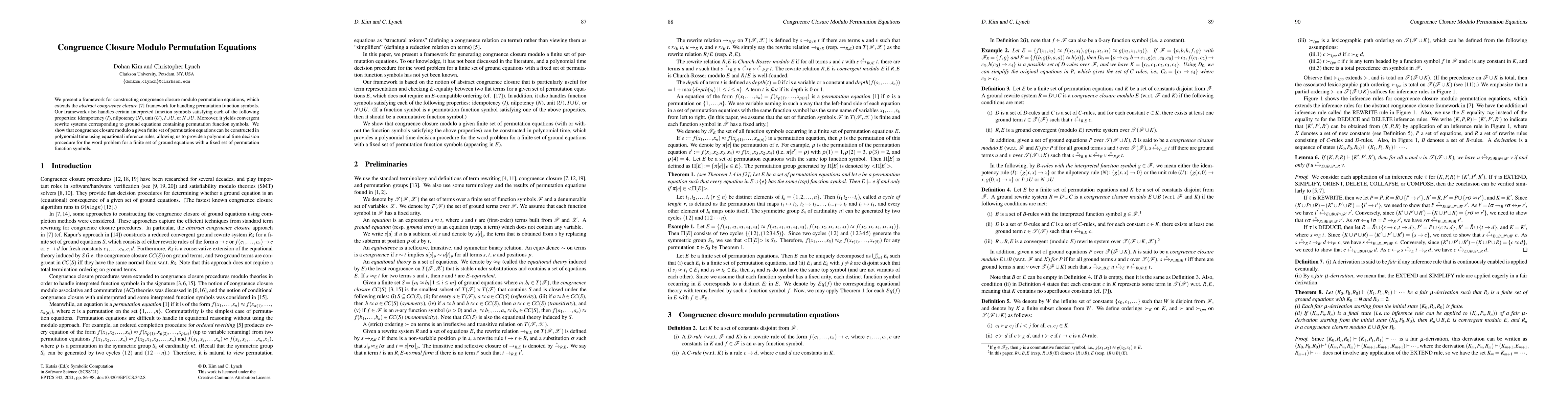 This research introduces a framework for constructing congruence closure for permutation equations, supporting specific interpreted function symbols and enabling polynomial time construction of congruence closure. It provides a decision procedure for solving the word problem for ground equations involving permutation functions.