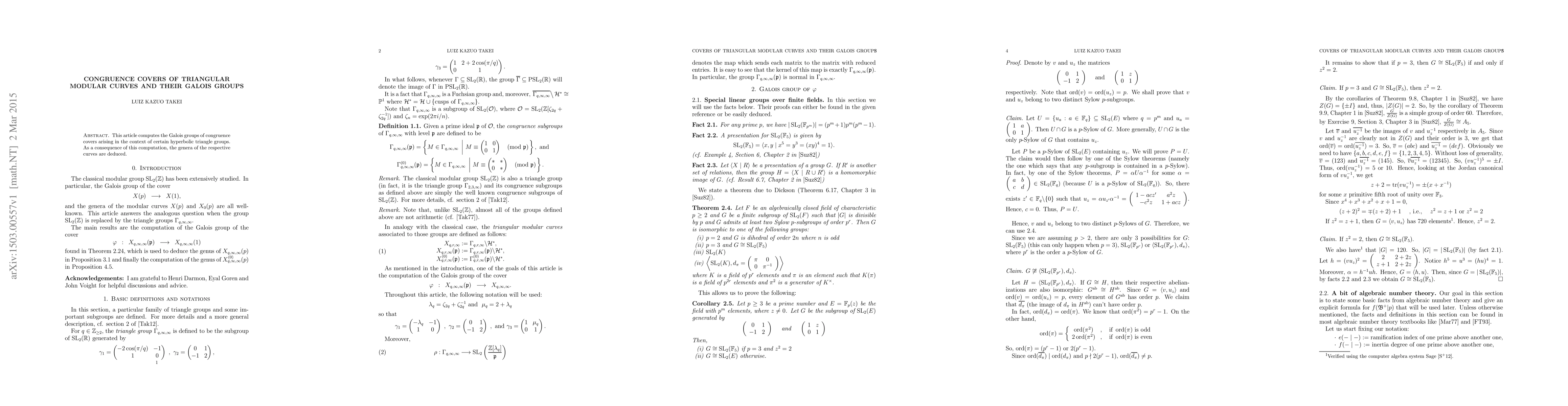 Researchers computed the Galois groups of congruence covers in hyperbolic triangle groups, leading to a deduction of curve genera.