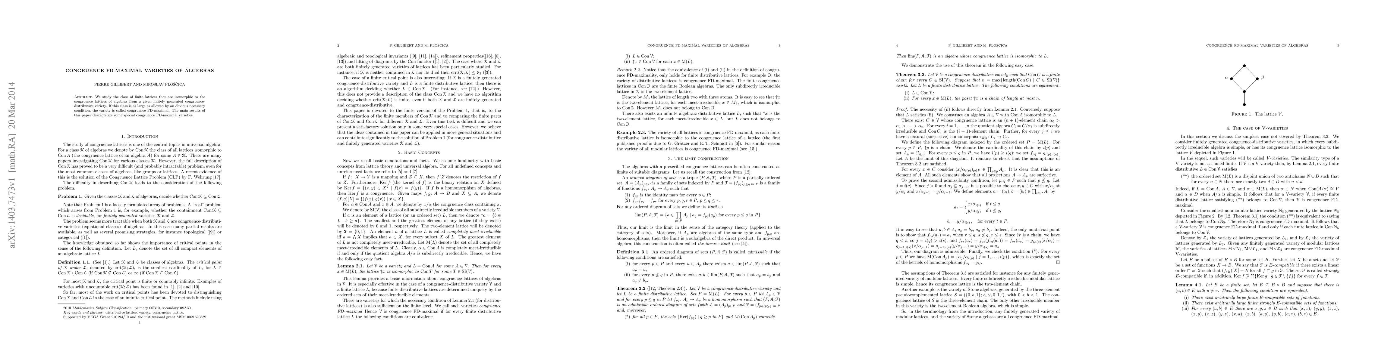 The paper studies finite lattices that are isomorphic to the congruence lattices of algebras from a given finitely generated congruence-distributive variety, characterizing some special congruence FD-maximal varieties.