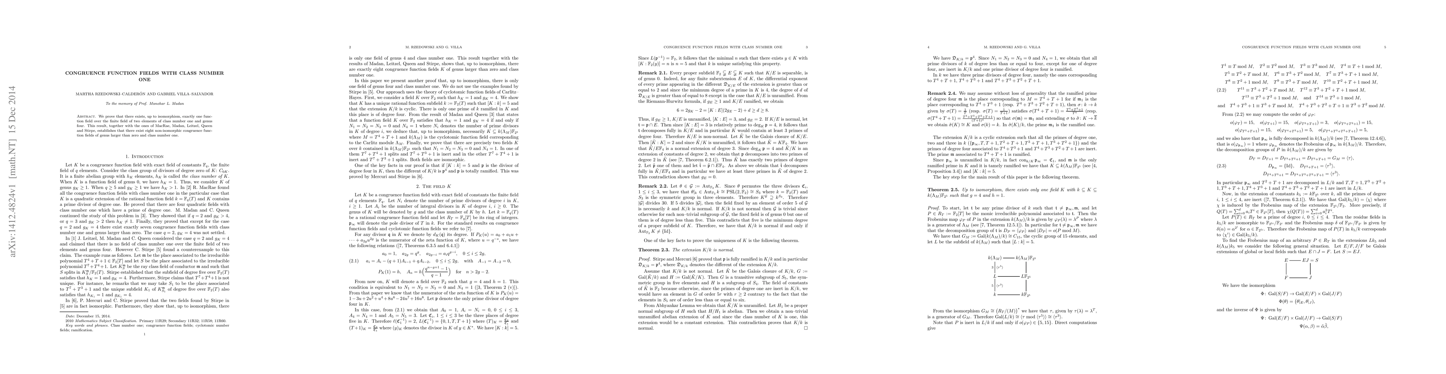 We prove that there exists, up to isomorphism, exactly one function field over the finite field of two elements of class number one and genus four. This result, together with the ones of MacRae, Madan, Leitzel, Queen and Stirpe, establishes that there exist eight non-isomorphic congruence function fields of genus larger than zero and class number one.