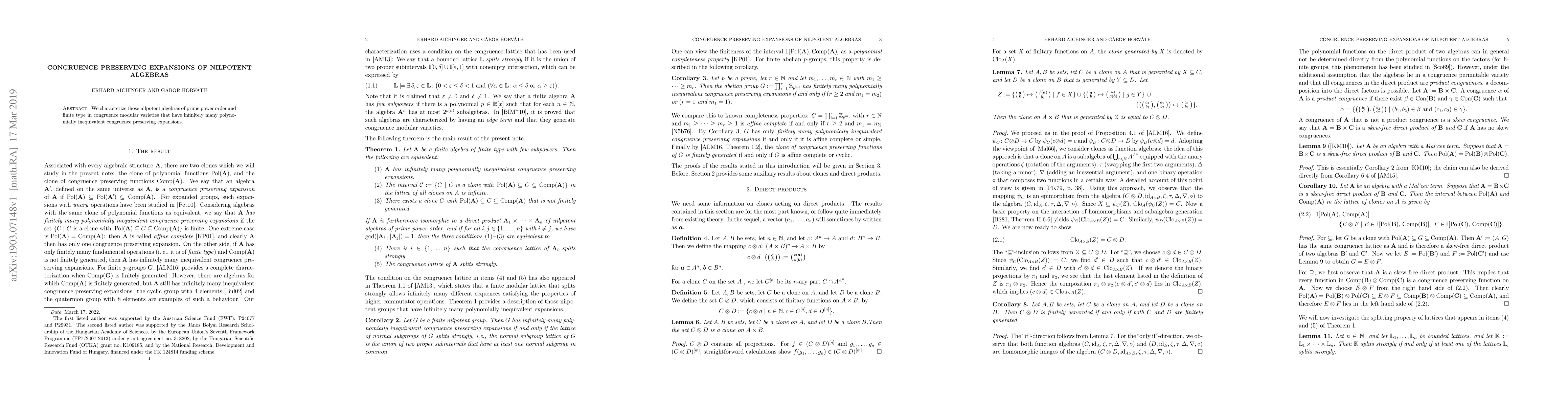 Summary: This paper identifies nilpotent algebras of prime power order within congruence modular varieties that possess infinitely many polynomially inequivalent congruence preserving expansions. The focus is on characterizing these specific algebraic structures.