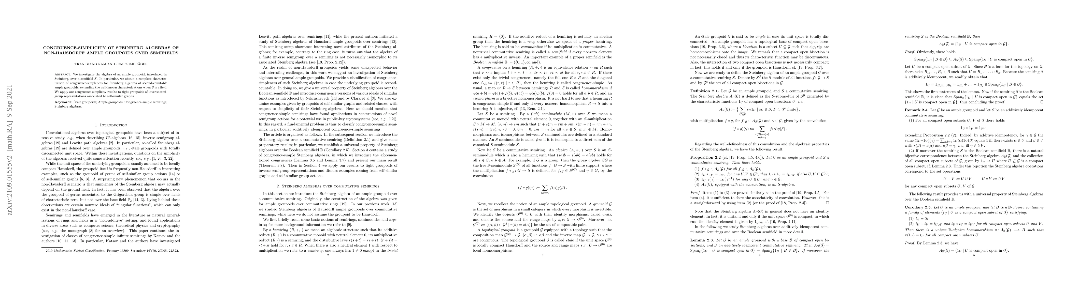This paper explores the congruence-simplicity of Steinberg algebras for second-countable ample groupoids over semifields, providing a complete characterization that extends existing field-based results. The findings are applied to tight groupoids of inverse semigroup representations linked to self-similar graphs.