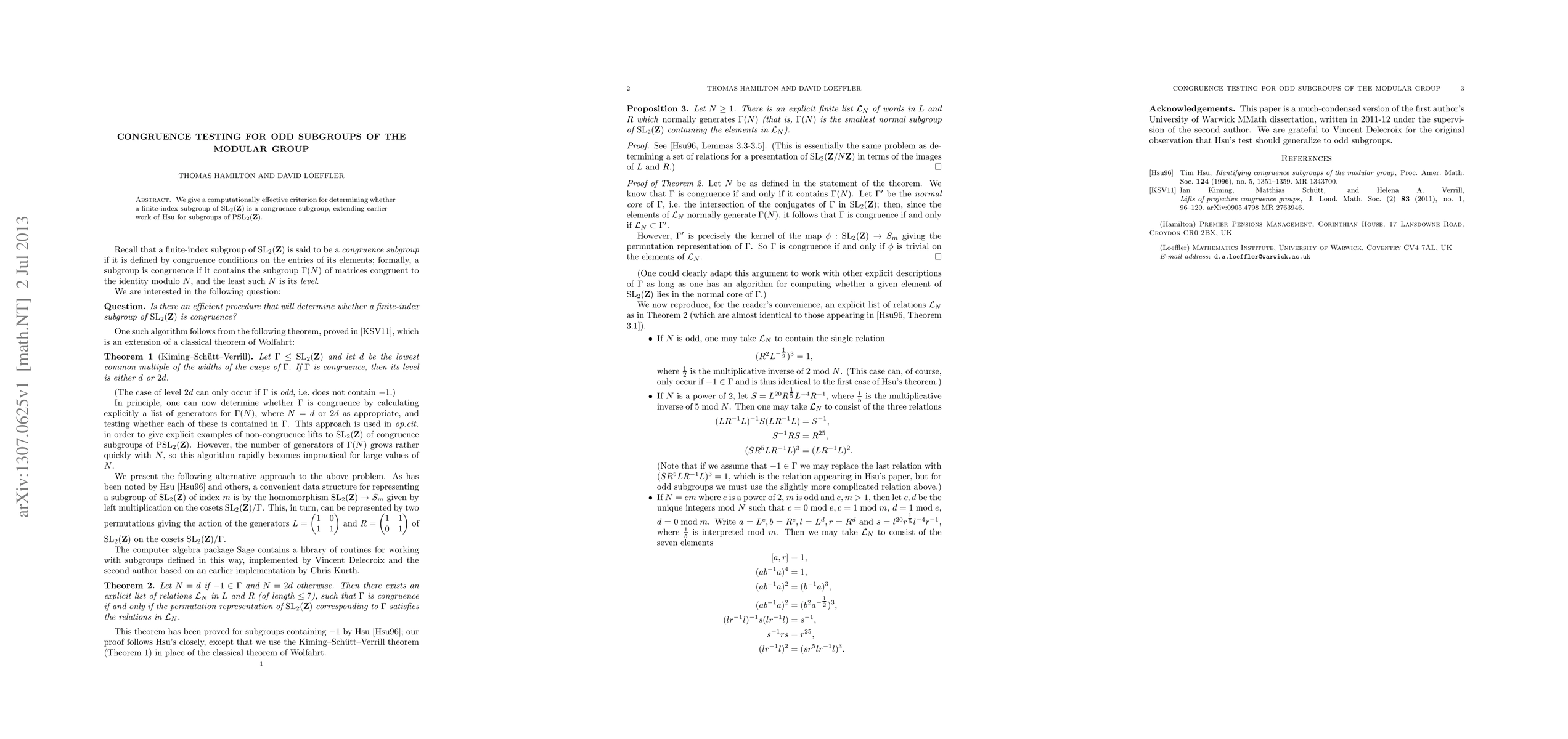 We give a computationally effective criterion for determining whether a finite-index subgroup of SL(2, Z) is a congruence subgroup, extending earlier work of Hsu for subgroups of PSL(2, Z).