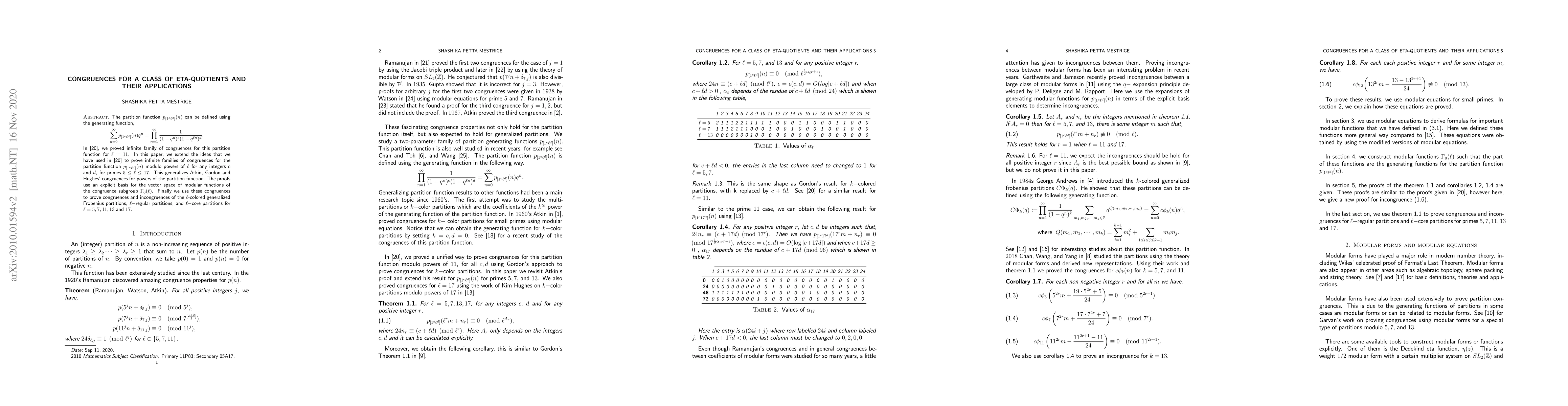 Researchers proved infinite families of congruences for a partition function related to eta-quotients, expanding on previous work for primes 5 to 17. This generalization has implications for various partitions and applications in number theory.