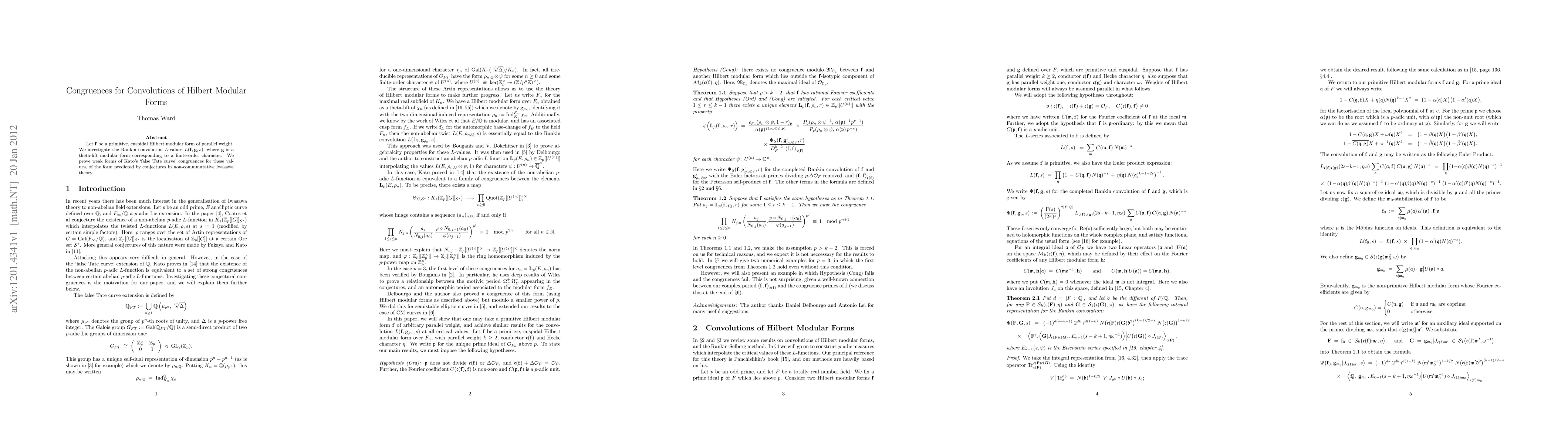 This paper investigates Rankin convolution $L$-values for a primitive, cuspidal Hilbert modular form $\f$ and a theta-lift modular form $\g$. It proves weak forms of Kato's 'false Tate curve' congruences for these convolutions, aligning with conjectures in non-commutative Iwasawa theory.