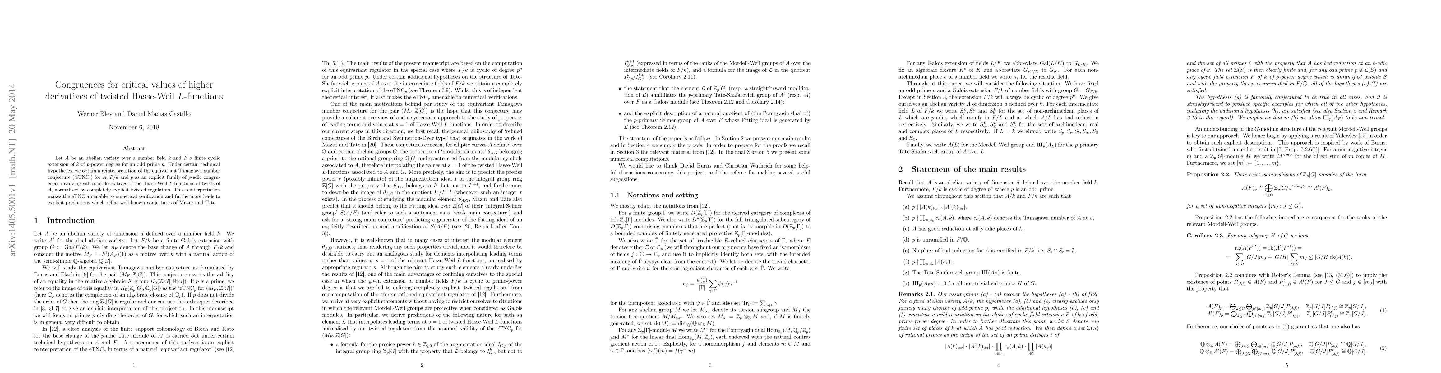 Let A be an abelian variety over a number field k and F a finite cyclic extension of k of p-power degree for an odd prime p. Under certain technical hypotheses, we obtain a reinterpretation of the equivariant Tamagawa number conjecture (eTNC) for A, F/k and p as an explicit family of p-adic congru- ences involving values of derivatives of the Hasse-Weil L-functions of twists of A, normalised by completely explicit twisted regulators. This reinterpretation makes the eTNC amenable to numerical verification and furthermore leads to explicit predictions which refine well-known conjectures of Mazur and Tate.