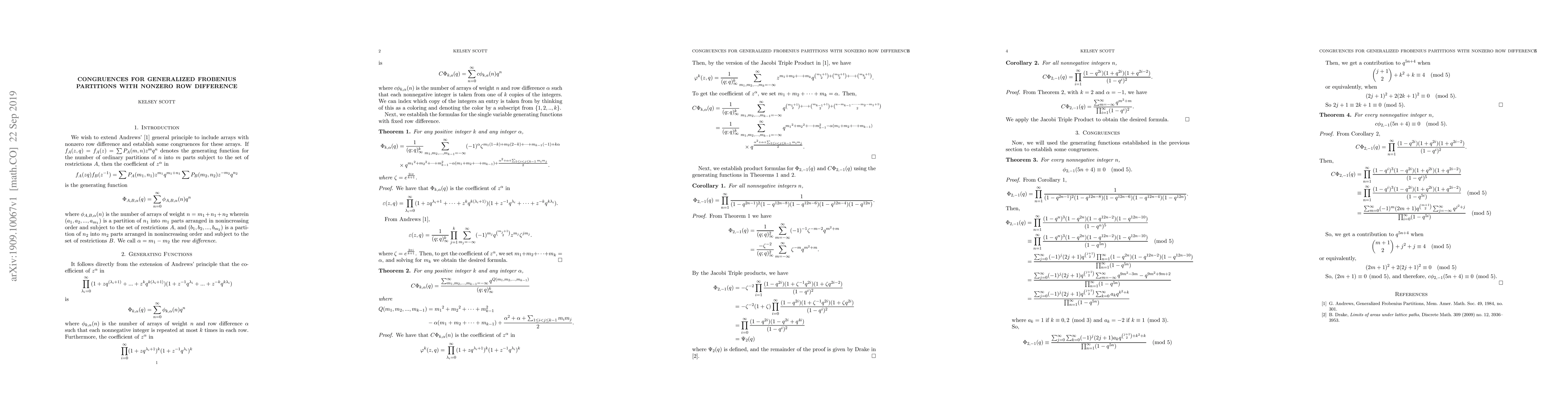 This research extends George Andrew's general principle for counting generalized Frobenius partitions to include arrays with nonzero row difference and has potential applications in number theory and combinatorics.