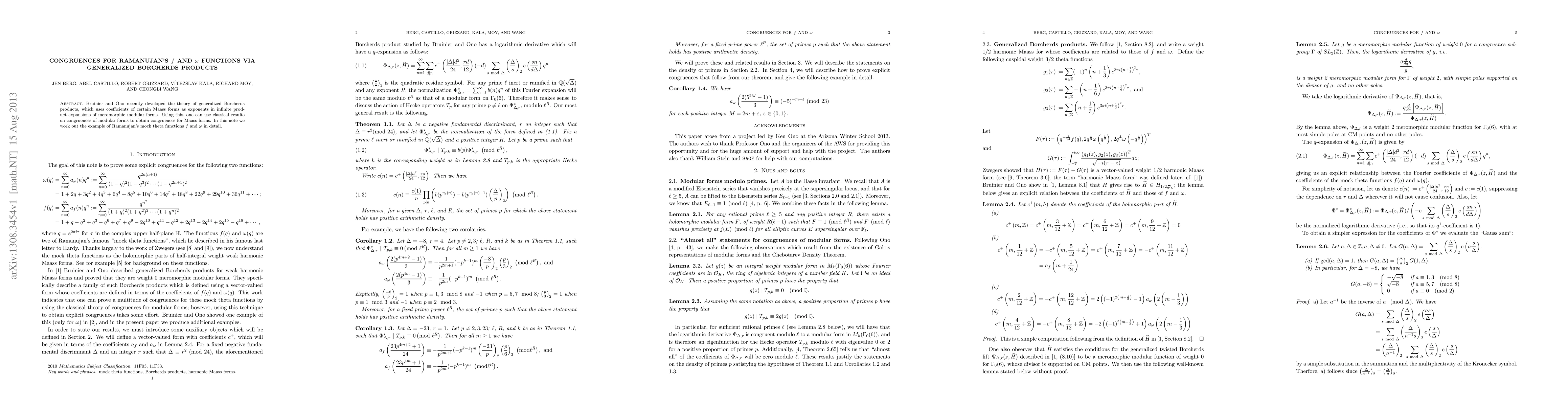 This paper explores congruences for Ramanujan's mock theta functions \( f \) and \( \omega \) through the framework of generalized Borcherds products, leveraging the theory developed by Bruinier and Ono to derive results from classical modular form congruences. The detailed analysis provides new insights into these important functions.