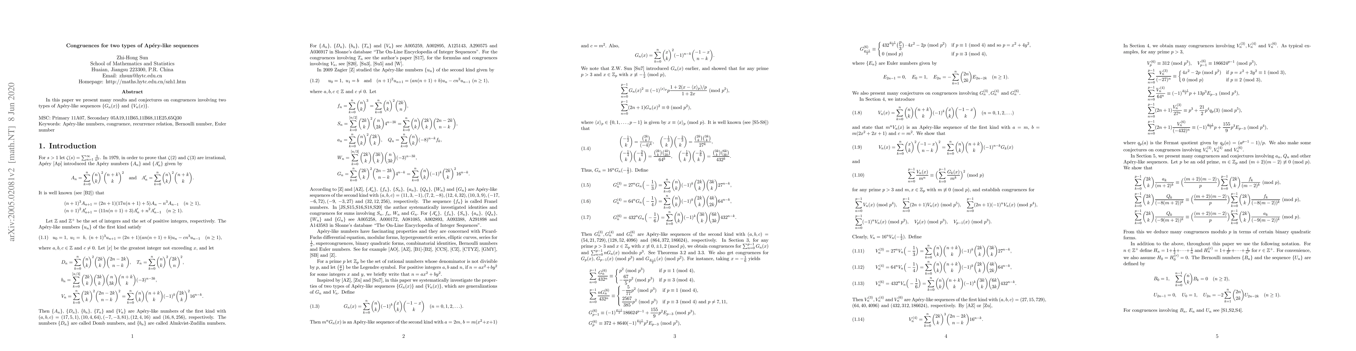 This paper investigates congruences involving Apery-like sequences, presenting key findings and conjectures on their properties.