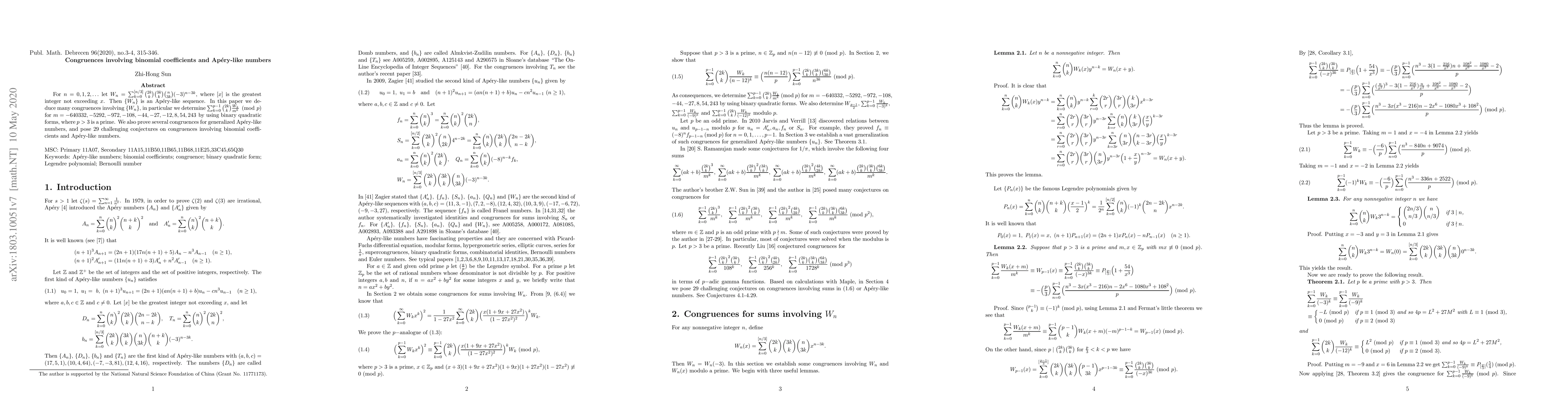 This paper explores Apéry-like sequences defined by a specific summation involving binomial coefficients and investigates congruences for these sequences. It determines values modulo primes for a series involving these sequences and poses 29 conjectures for further exploration.