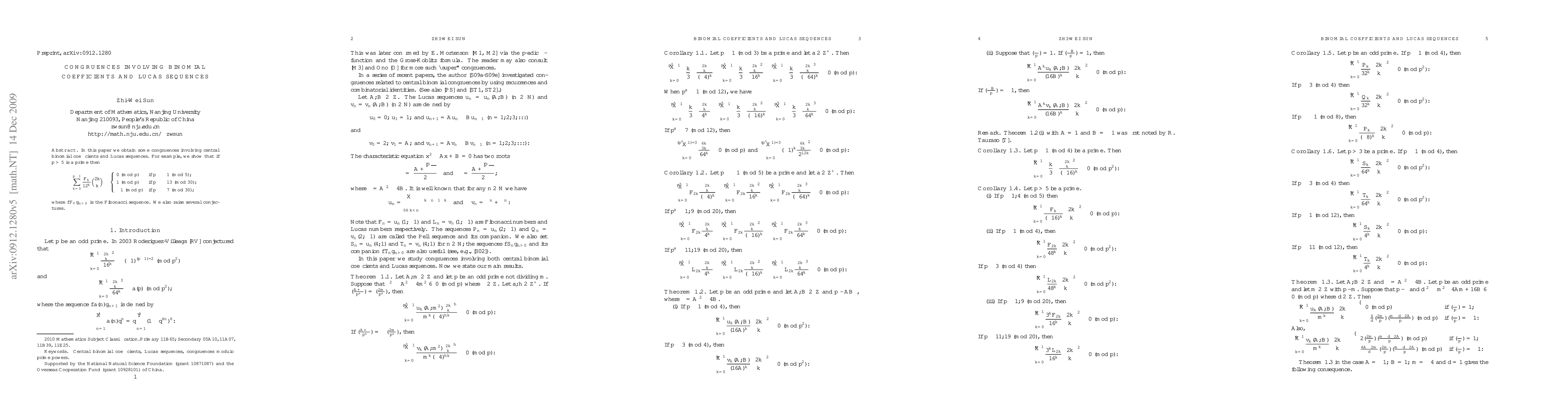 This paper establishes congruences between central binomial coefficients and Lucas sequences, specifically showing that $\sum_{k=0}^{p-1}F_k \binom{2k}{k}/12^k$ is congruent to 0, 1, or -1 modulo primes p according to specific residue classes. It also proposes several conjectures related to these findings.