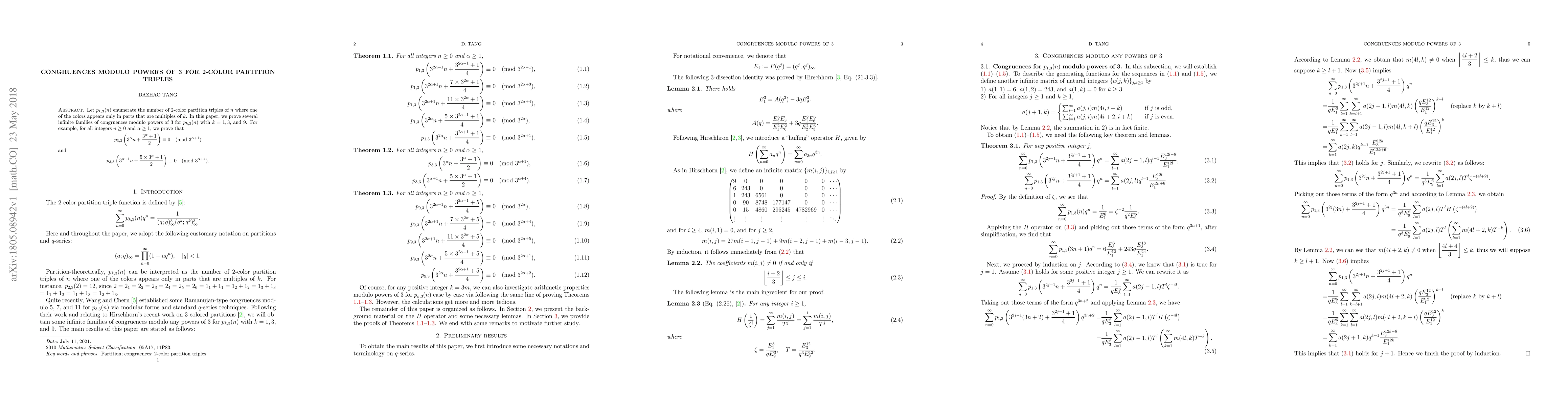 This paper proves infinite families of congruences modulo powers of 3 for 2-color partition triples where one color appears only in parts that are multiples of specific values. Key results include congruences for $p_{3,3}(n)$ at specific forms involving powers of 3.