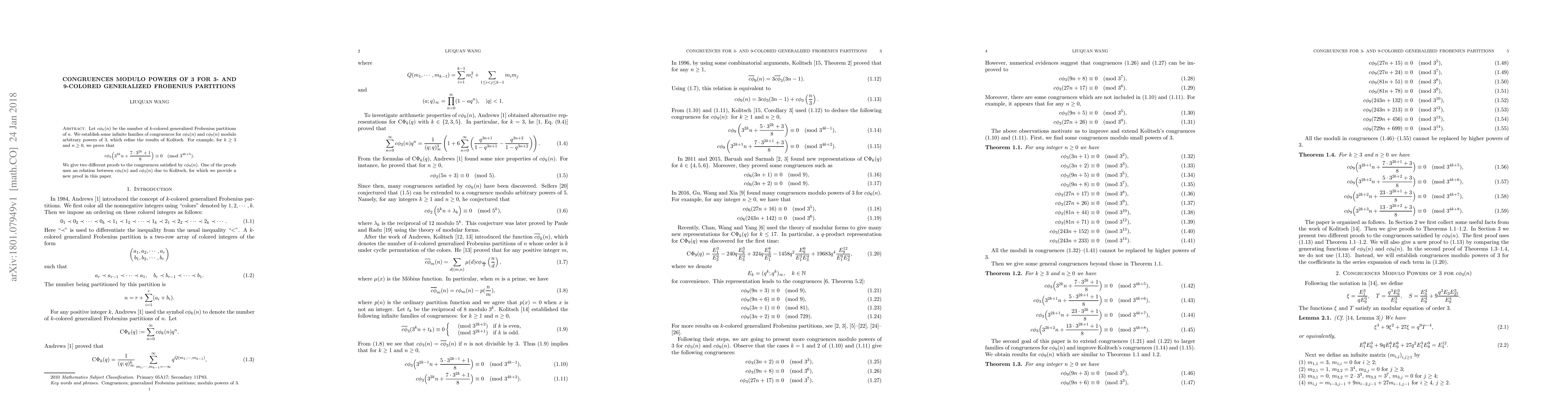 Let $c\phi_{k}(n)$ be the number of $k$-colored generalized Frobenius partitions of $n$. We establish some infinite families of congruences for $c\phi_{3}(n)$ and $c\phi_{9}(n)$ modulo arbitrary powers of 3, which refine the results of Kolitsch. For example, for $k\ge 3$ and $n\ge 0$, we prove that \[c\phi_{3}\Big(3^{2k}n+\frac{7\cdot 3^{2k}+1}{8}\Big) \equiv 0 \pmod{3^{4k+5}}.\] We give two different proofs to the congruences satisfied by $c\phi_{9}(n)$. One of the proofs uses an relation between $c\phi_{9}(n)$ and $c\phi_{3}(n)$ due to Kolitsch, for which we provide a new proof in this paper.