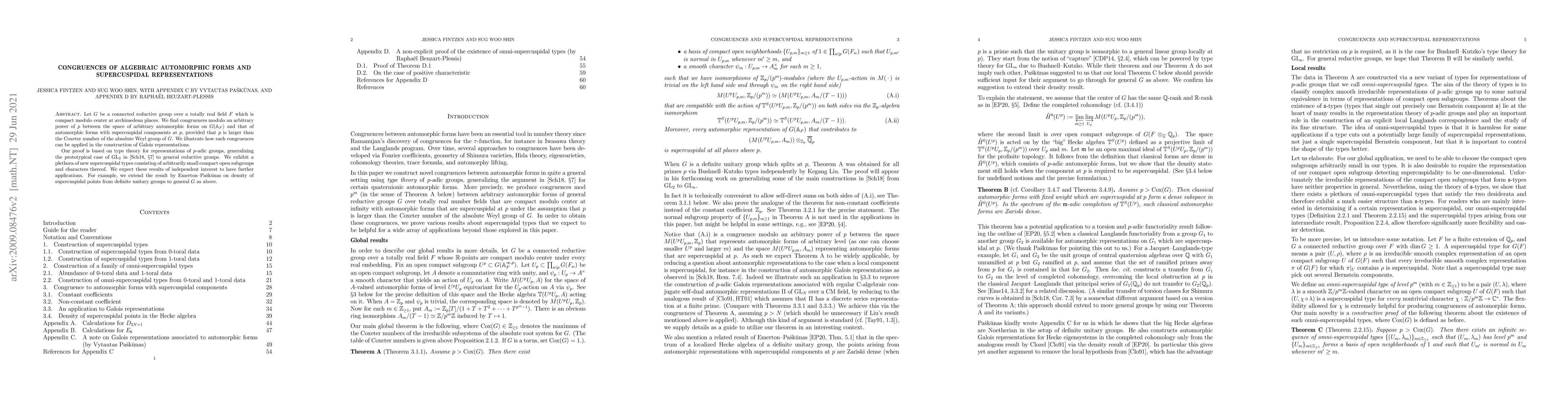 This paper establishes congruences between automorphic forms on reductive groups and supercuspidal representations, using type theory for p-adic groups. These congruences are shown to be applicable in constructing Galois representations and extend previous results on supercuspidal points.