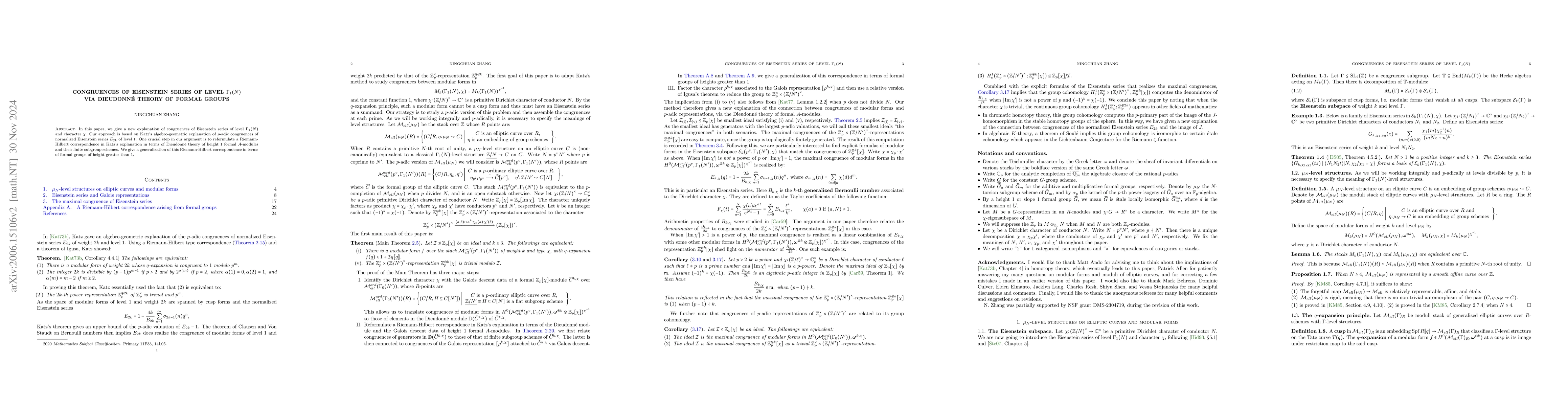 This paper explores $p$-adic congruences of Eisenstein series of level $\Gamma_1(N)$ through the lens of Dieudonné theory, connecting them to group cohomology and the stable homotopy groups of spheres via the $J$-homomorphism. The study reformulates Riemann-Hilbert correspondence using height $1$ formal $A$-modules and finite subgroup schemes.