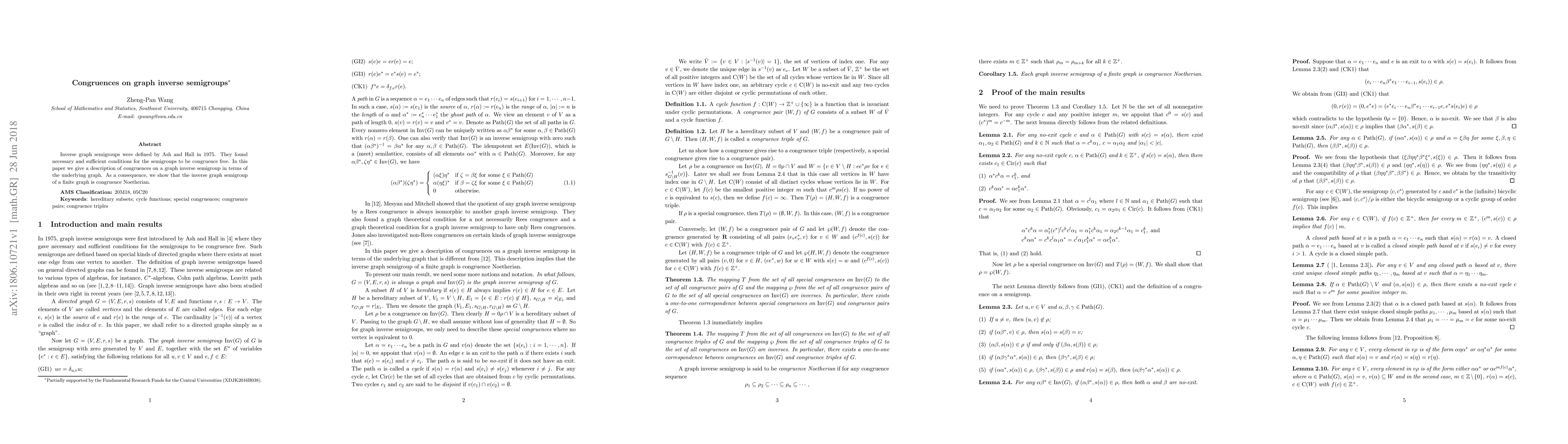 This paper describes the congruences on inverse graph semigroups in relation to their underlying graphs, proving that the inverse graph semigroup of a finite graph is congruence Noetherian. The study builds on the foundational work of Ash and Hall from 1975 on necessary and sufficient conditions for these semigroups.