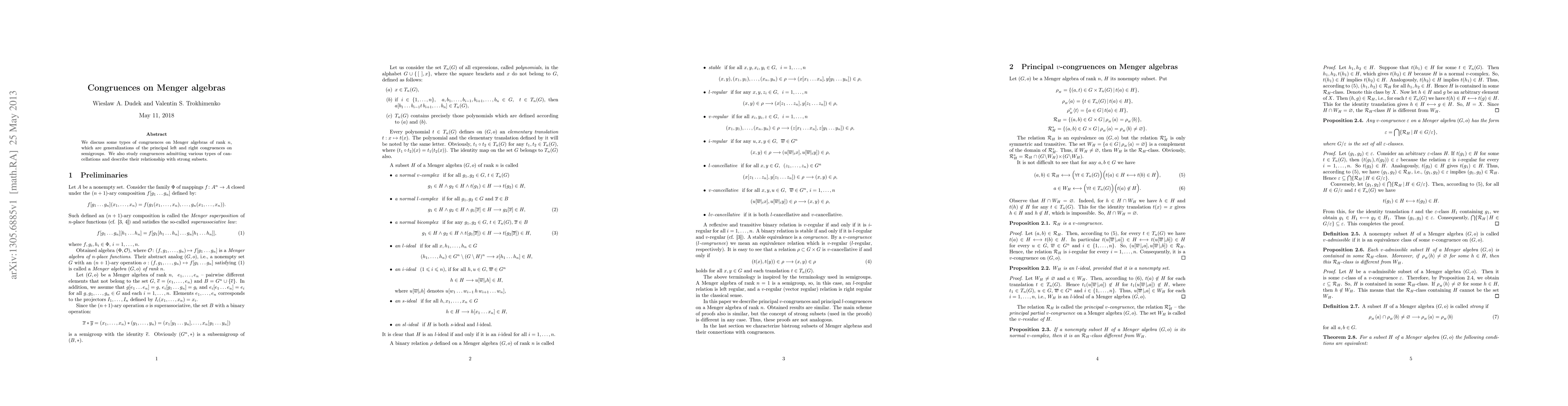 Summary: This paper explores various congruences on Menger algebras of rank $n$, extending concepts from semigroups, and investigates their cancellation properties and connections to strong subsets.
