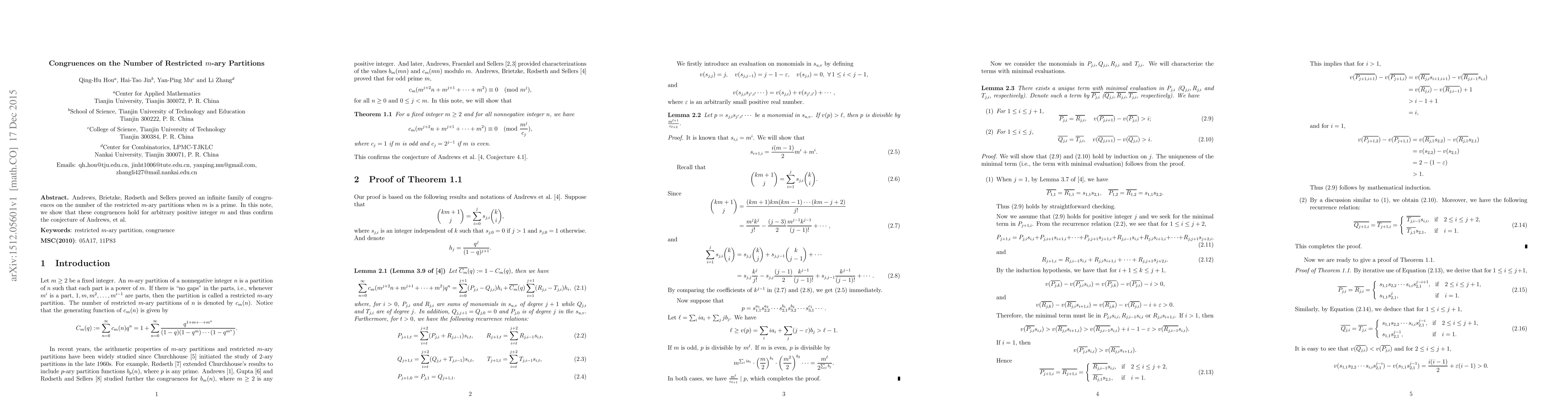 The paper presents a generalized theorem and proof for congruences on the number of restricted m-ary partitions for any positive integer m, extending previous work limited to prime m.