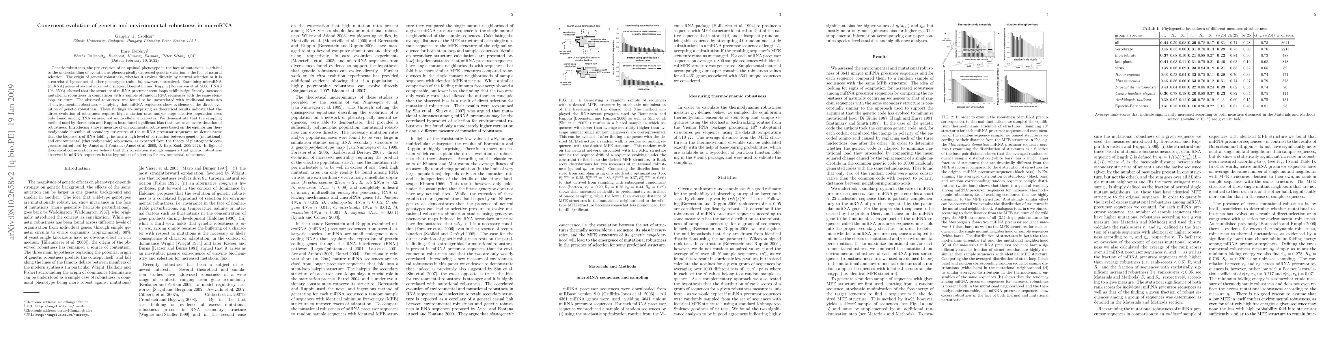 Genetic robustness, the preservation of an optimal phenotype in the face of mutations, is critical to the understanding of evolution as phenotypically expressed genetic variation is the fuel of natural selection. The origin of genetic robustness, whether it evolves directly by natural selection or it is a correlated byproduct of other phenotypic traits, is, however, unresolved. Examining microRNA (miRNA) genes of several eukaryotic species, Borenstein and Ruppin (Borenstein et al. 2006, PNAS 103: 6593), showed that the structure of miRNA precursor stem-loops exhibits significantly increased mutational robustness in comparison with a sample of random RNA sequences with the same stem-loop structure. The observed robustness was found to be uncorrelated with traditional measures of environmental robustness -- implying that miRNA sequences show evidence of the direct evolution of genetic robustness. These findings are surprising as theoretical results indicate that the direct evolution of robustness requires high mutation rates and/or large effective population sizes only found among RNA viruses, not multicellular eukaryotes. Introducing a novel measure of environmental robustness based on the equilibrium thermodynamic ensemble of secondary structures of the miRNA precursor sequences we demonstrate that the biophysics of RNA folding, induces a high level of correlation between genetic (mutational) and environmental (thermodynamic) robustness, as expected from the theory of plastogenetic congruence introduced by Ancel and Fontana (Ancel et al. 2000, J. Exp. Zool. 288: 242). In light of theoretical considerations we believe that this correlation strongly suggests that genetic robustness observed in miRNA sequences is the byproduct of selection for environmental robustness.