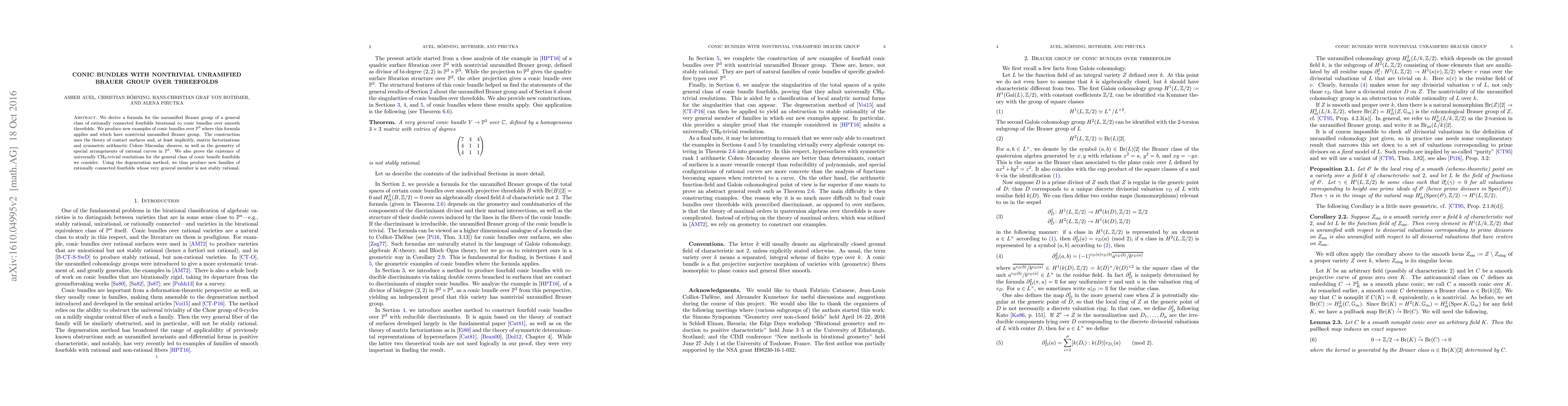 Summary: This paper derives a formula for the unramified Brauer group of rationally connected fourfolds related to conic bundles over smooth threefolds, presents new examples with nontrivial unramified Brauer groups, and proves the existence of universally CH₀-trivial resolutions for these fourfolds, showing that the very general member in these families is not stably rational.