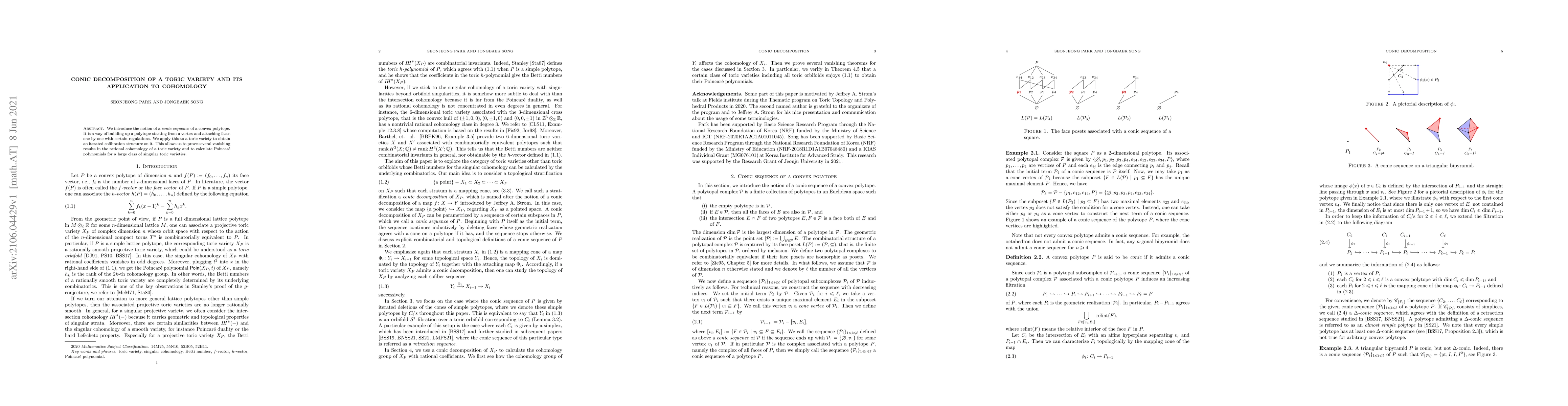 We introduce the notion of a \emph{conic sequence} of a convex polytope. It is a way of building up a polytope starting from a vertex and attaching faces one by one with certain regulations. We apply this to a toric variety to obtain an iterated cofibration structure on it. This allows us to prove several vanishing results in the rational cohomology of a toric variety and to calculate Poincar\'e polynomials for a large class of singular toric varieties.