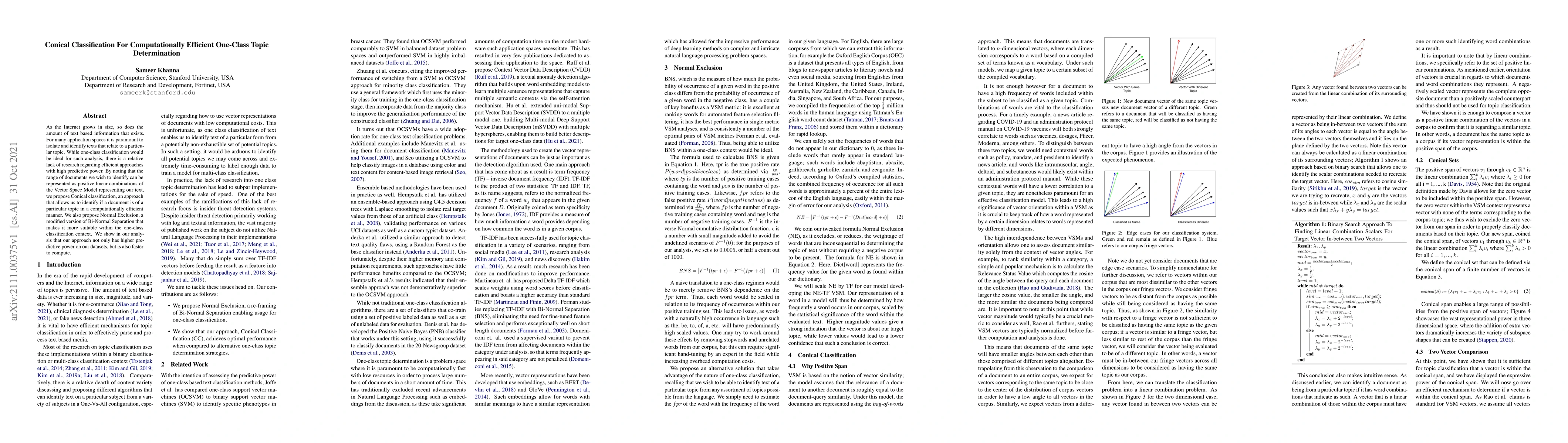 Researchers propose Conical classification for efficient one-class topic determination, outperforming existing approaches with higher predictive power and reduced computational cost.