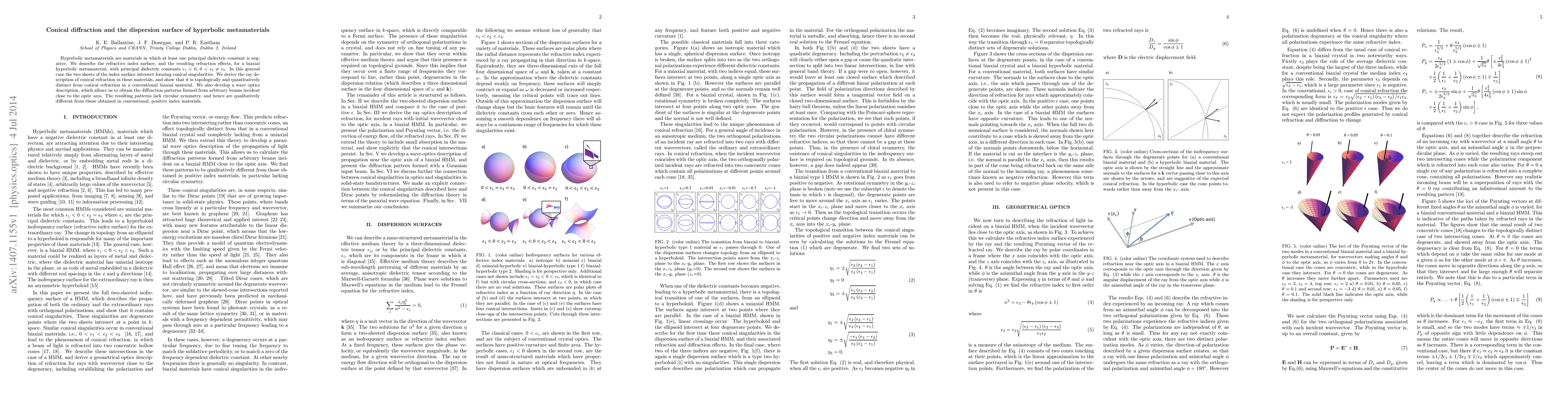 This paper investigates the unique refractive index surface and diffraction phenomena in biaxial hyperbolic metamaterials with negative dielectric constants. It reveals distinct conical refraction and asymmetric diffraction patterns compared to conventional materials.