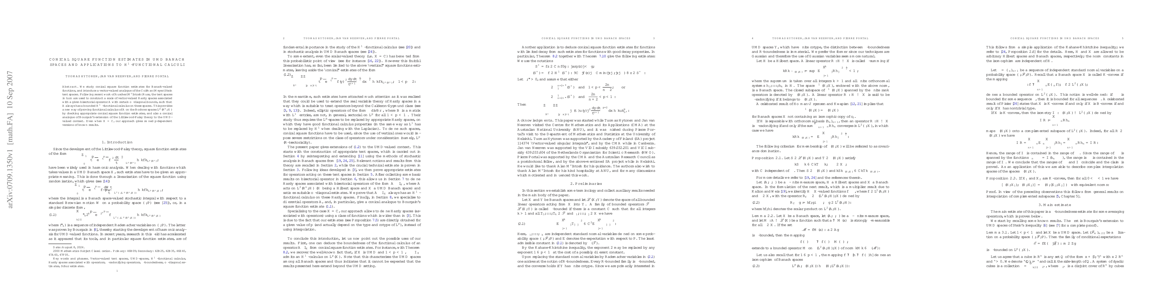 This paper investigates conical square function estimates for Banach-valued functions and introduces a vector-valued analogue of tent spaces to construct vector-valued Hardy spaces. It provides a new method to prove the functional calculus of a given operator on Bochner spaces, offering refined results even when the Banach space is simply \(\mathbb{C}\).