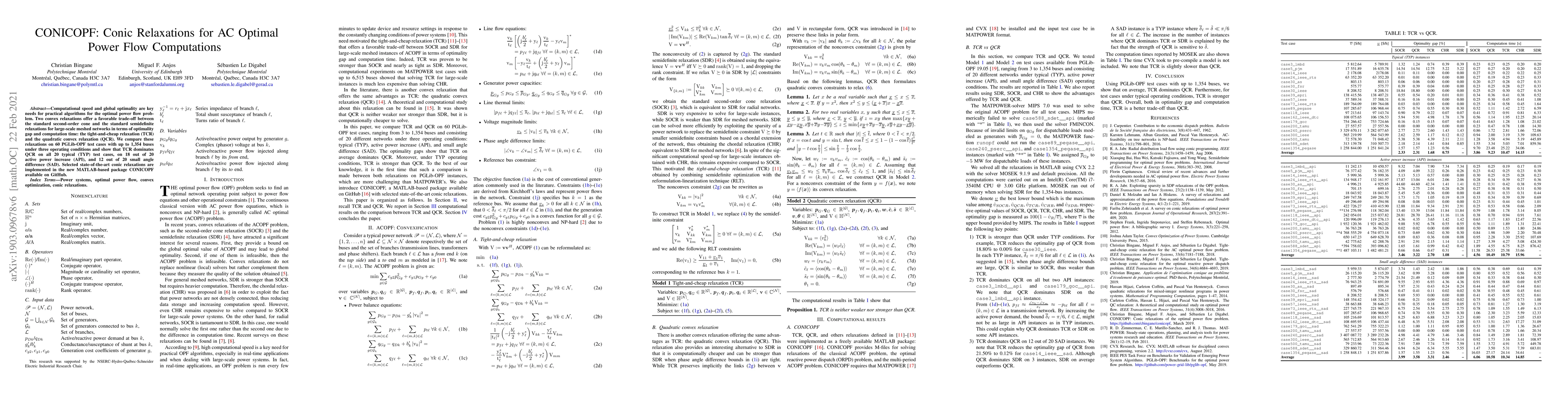The paper introduces two convex relaxations—TCR and QCR—for AC optimal power flow computations, demonstrating that TCR outperforms QCR in terms of optimality gap and computation time on large-scale meshed networks. The CONICOPF MATLAB package implements these relaxations and is available on GitHub.