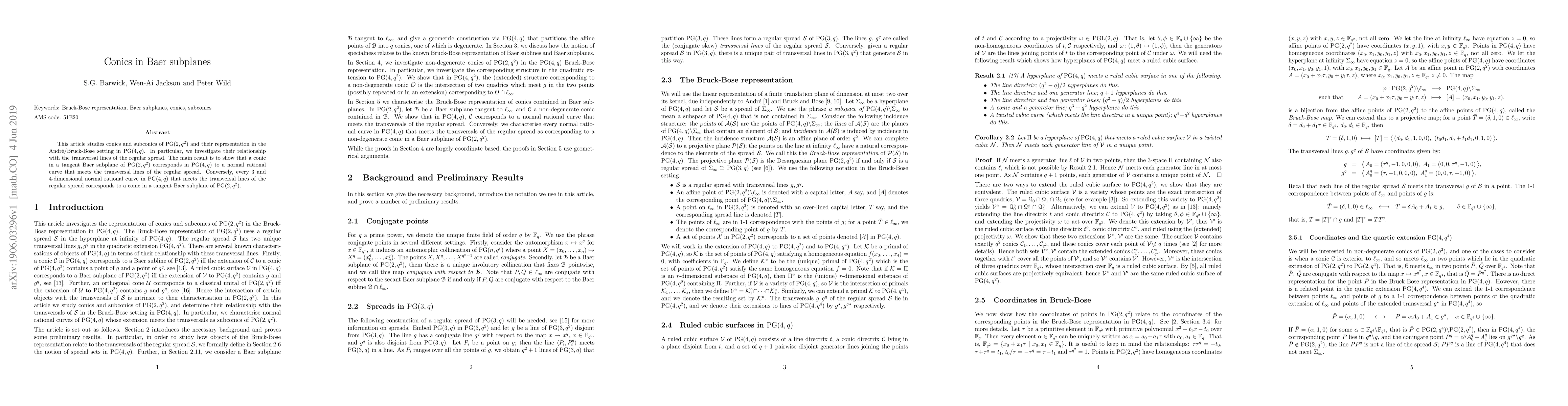 This article studies conics and subconics of $PG(2,q^2)$ and their representation in the Andr\'e/Bruck-Bose setting in $PG(4,q)$. In particular, we investigate their relationship with the transversal lines of the regular spread. The main result is to show that a conic in a tangent Baer subplane of $PG(2,q^2)$ corresponds in $PG(4,q)$ to a normal rational curve that meets the transversal lines of the regular spread. Conversely, every 3 and 4-dimensional normal rational curve in $PG(4,q)$ that meets the transversal lines of the regular spread corresponds to a conic in a tangent Baer subplane of $PG(2,q^2)$.