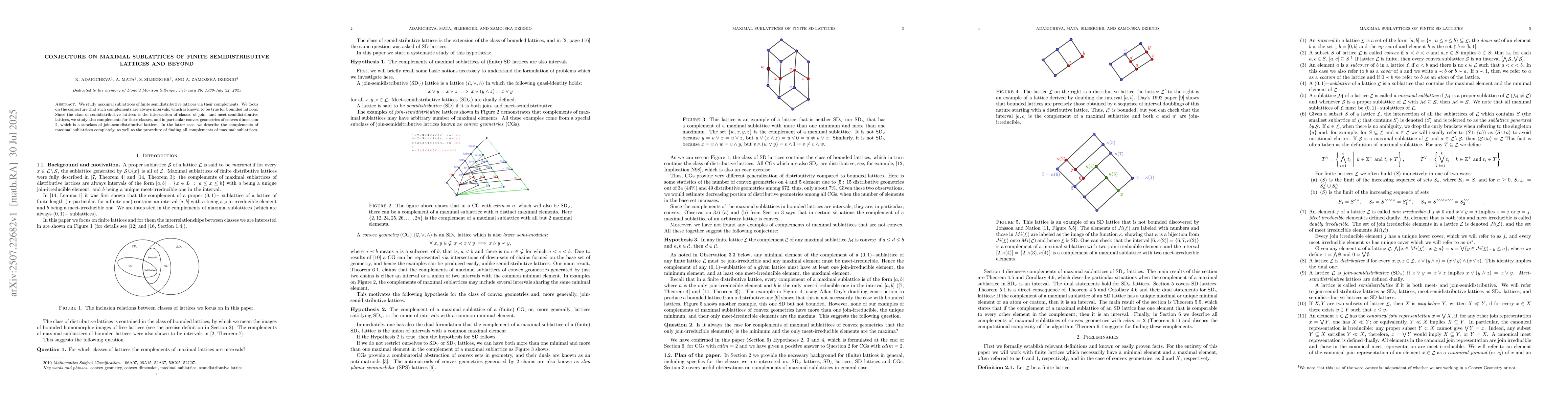 The paper introduces and proves several key observations and lemmas regarding the structure of maximal sublattices and their complements, particularly in the context of semidistributive lattices and convex geometries.