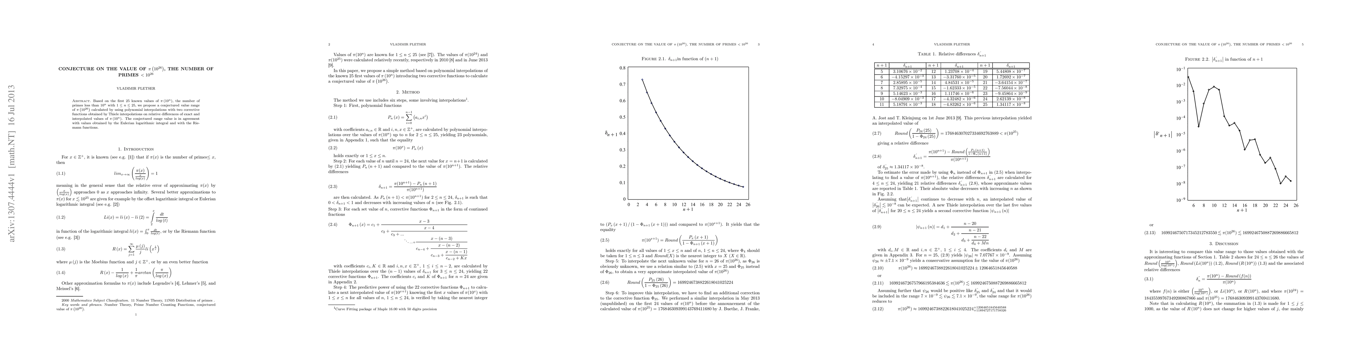 Based on the first 25 known values of Pi(10^n), the number of primes less than 10^n, with n integer between 1 and 25, we propose a conjectured value range of Pi(10^26) calculated by using polynomial interpolations with two corrective functions obtained by Thiele interpolations on relative differences of exact and interpolated values of Pi(10^n). The conjectured range value is in agreement with values obtained by the Eulerian logarithmic integral and with the Riemann functions.