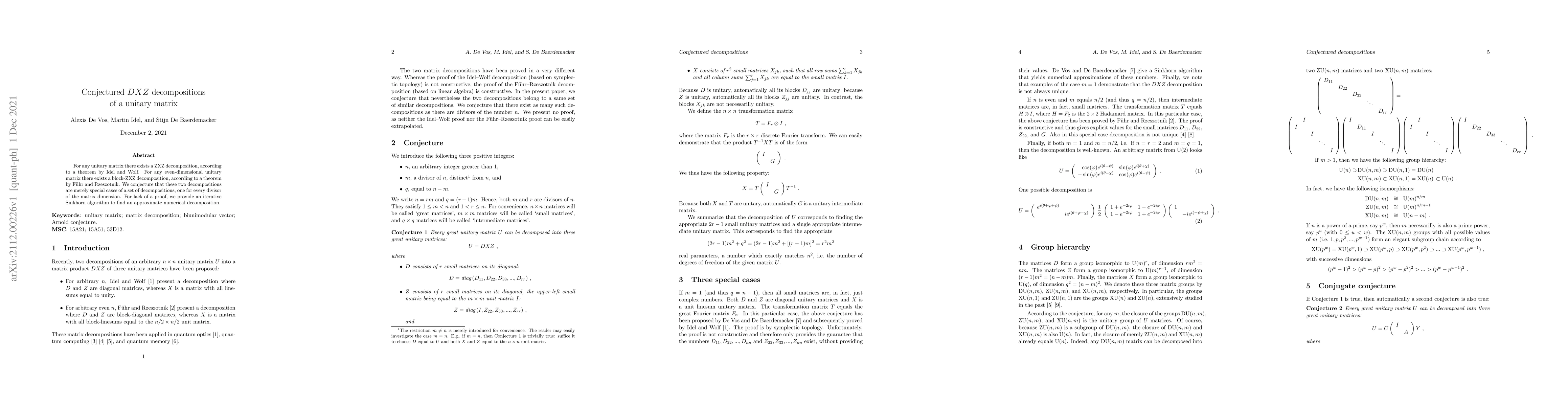 Researchers conjecture that unitary matrices can have multiple decompositions based on their dimension, proposing a more general framework for block-ZXZ decompositions than previously known special cases. An iterative algorithm is provided to find approximate numerical solutions.