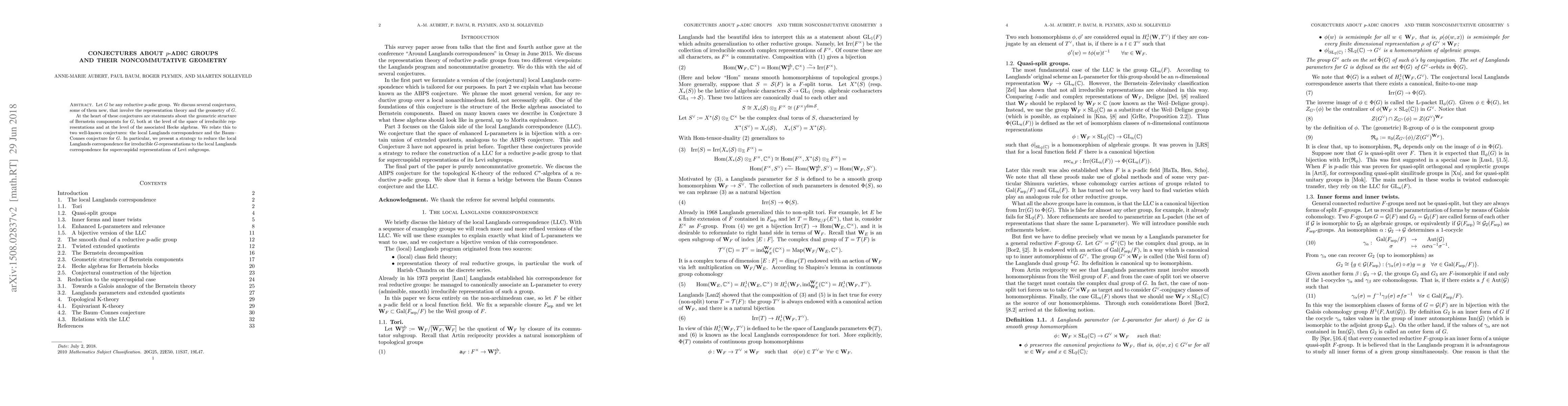 Let G be any reductive p-adic group. We discuss several conjectures, some of them new, that involve the representation theory and the geometry of G. At the heart of these conjectures are statements about the geometric structure of Bernstein components for G, both at the level of the space of irreducible representations and at the level of the associated Hecke algebras. We relate this to two well-known conjectures: the local Langlands correspondence and the Baum--Connes conjecture for G. In particular, we present a strategy to reduce the local Langlands correspondence for irreducible G-representations to the local Langlands correspondence for supercuspidal representations of Levi subgroups.