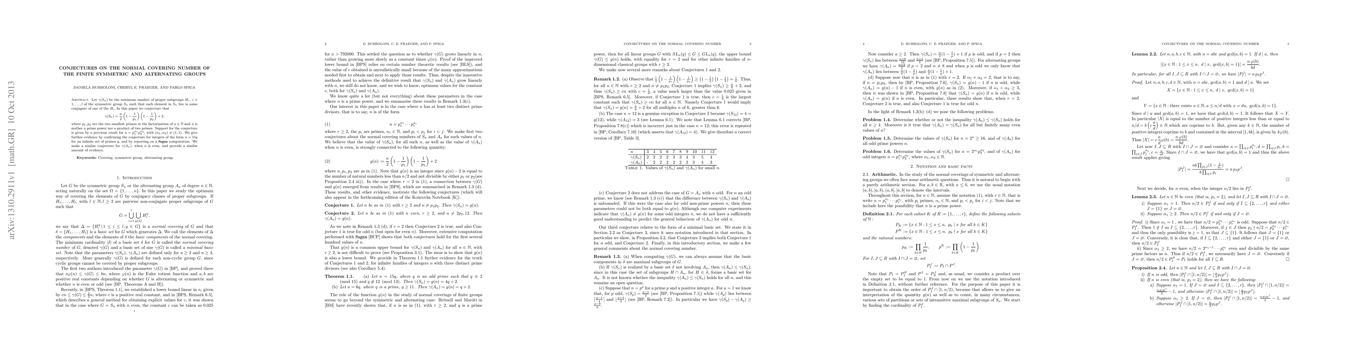 Let $\gamma(S_n)$ be the minimum number of proper subgroups $H_i$ of the symmetric group $S_n$ such that each element in $S_n$ lies in some conjugate of one of the $H_i.$ In this paper we conjecture that $$\gamma(S_n)=\frac{n}{2}\left(1-\frac{1}{p_1}\right) \left(1-\frac{1}{p_2}\right)+2,$$ where $p_1,p_2$ are the two smallest primes in the factorization of $n$ and $n$ is neither a prime power nor a product of two primes. Support for the conjecture is given by a previous result for $n=p_1^{\alpha_1}p_2^{\alpha_2},$ with $(\alpha_1,\alpha_2)\neq (1,1)$. We give further evidence by confirming the conjecture for integers of the form $n=15q$ for an infinite set of primes $q$, and by reporting on a Magma computation. We make a similar conjecture for $\gamma(A_n)$, when $n$ is even, and provide a similar amount of evidence.