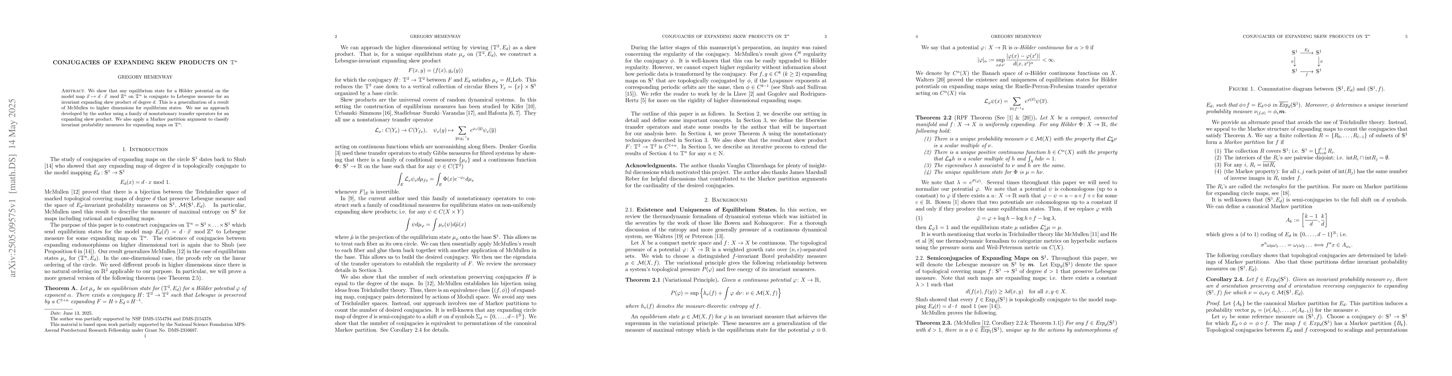 This research demonstrates that equilibrium states for Holder potentials on a model map on T^n are conjugate to Lebesgue measure for an invariant expanding skew product of degree d, generalizing McMullen's result to higher dimensions. The methodology involves nonstationary transfer operators for skew products and Markov partition for classifying invariant measures.