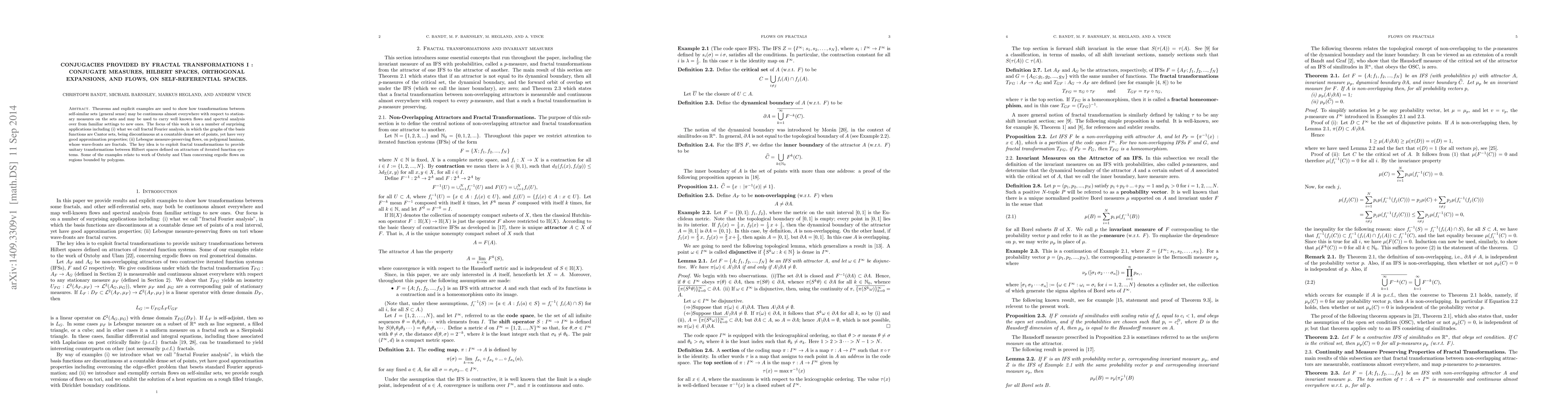 Theorems and explicit examples are used to show how transformations between self-similar sets (general sense) may be continuous almost everywhere with respect to stationary measures on the sets and may be used to carry well known flows and spectral analysis over from familiar settings to new ones. The focus of this work is on a number of surprising applications including (i) what we call fractal Fourier analysis, in which the graphs of the basis functions are Cantor sets, being discontinuous at a countable dense set of points, yet have very good approximation properties; (ii) Lebesgue measure-preserving flows, on polygonal laminas, whose wave-fronts are fractals. The key idea is to exploit fractal transformations to provide unitary transformations between Hilbert spaces defined on attractors of iterated function systems. Some of the examples relate to work of Oxtoby and Ulam concerning ergodic flows on regions bounded by polygons.