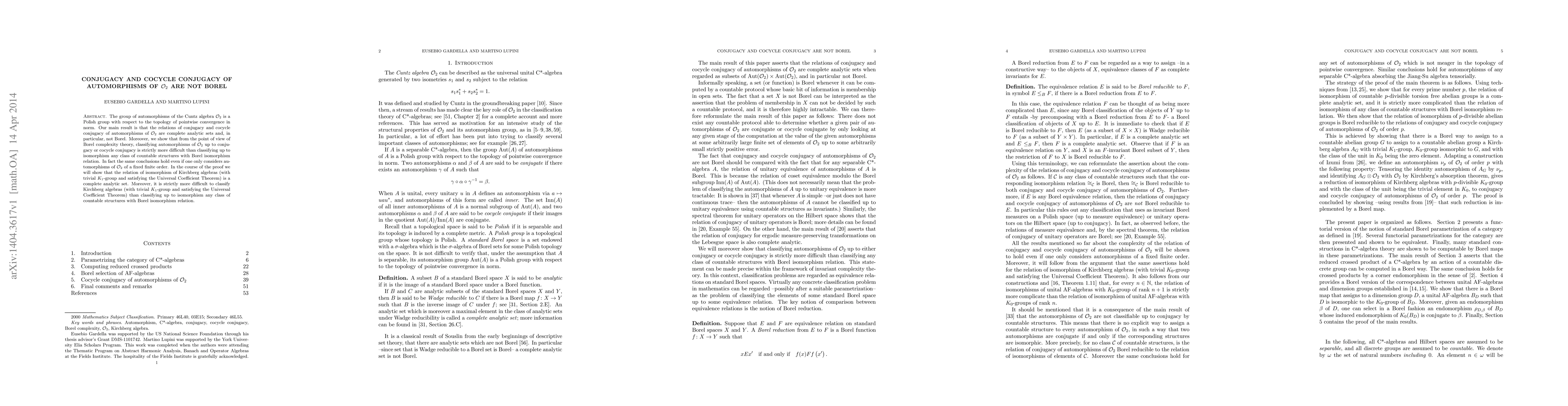Automorphisms of the Cuntz algebra ς_2 are not Borel when classified by conjugacy or cocycle conjugacy, making their classification more difficult than any countable structure up to isomorphism.