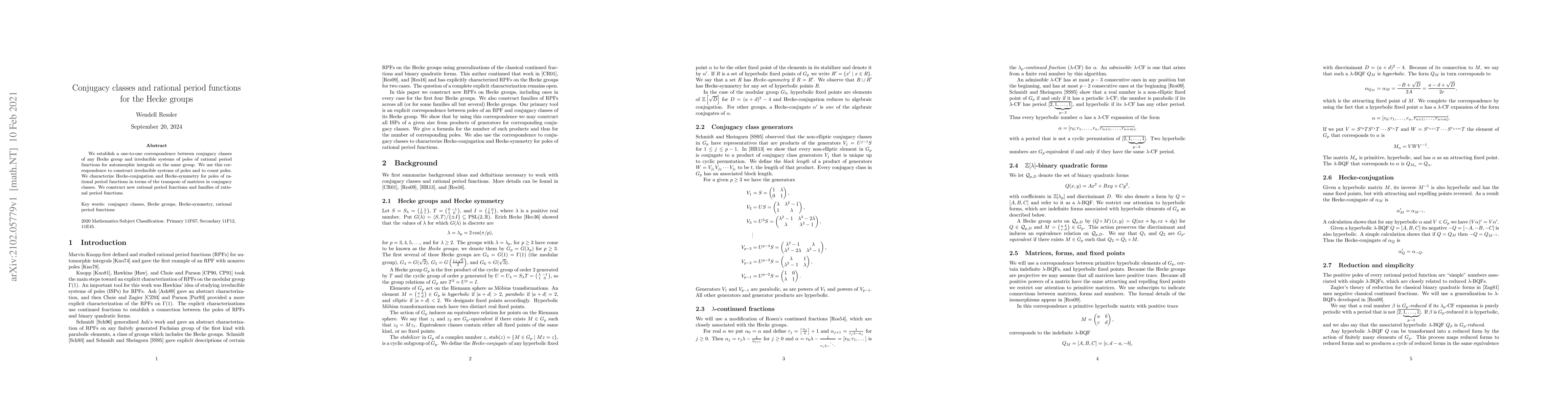 We establish a one-to-one correspondence between conjugacy classes of any Hecke group and irreducible systems of poles of rational period functions for automorphic integrals on the same group. We use this correspondence to construct irreducible systems of poles and to count poles. We characterize Hecke-conjugation and Hecke-symmetry for poles of rational period functions in terms of the transpose of matrices in conjugacy classes. We construct new rational period functions and families of rational period functions.