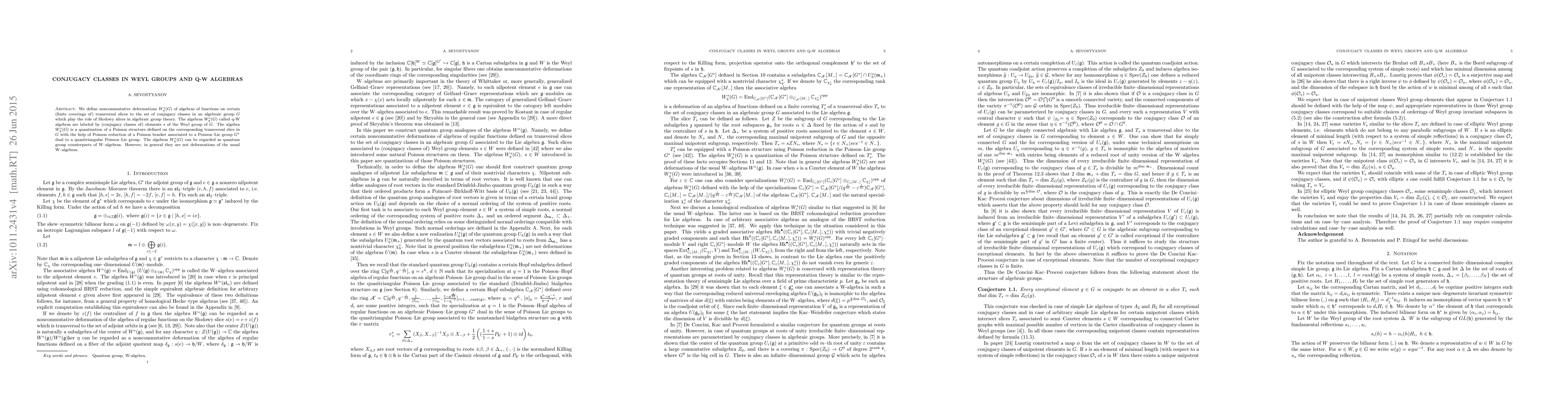 This paper introduces q-W algebras $W_q^s(G)$, noncommutative deformations linked to conjugacy classes in algebraic groups, and quantizes Poisson structures on transversal slices. These algebras serve as quantum group counterparts to W-algebras but are distinct deformations.